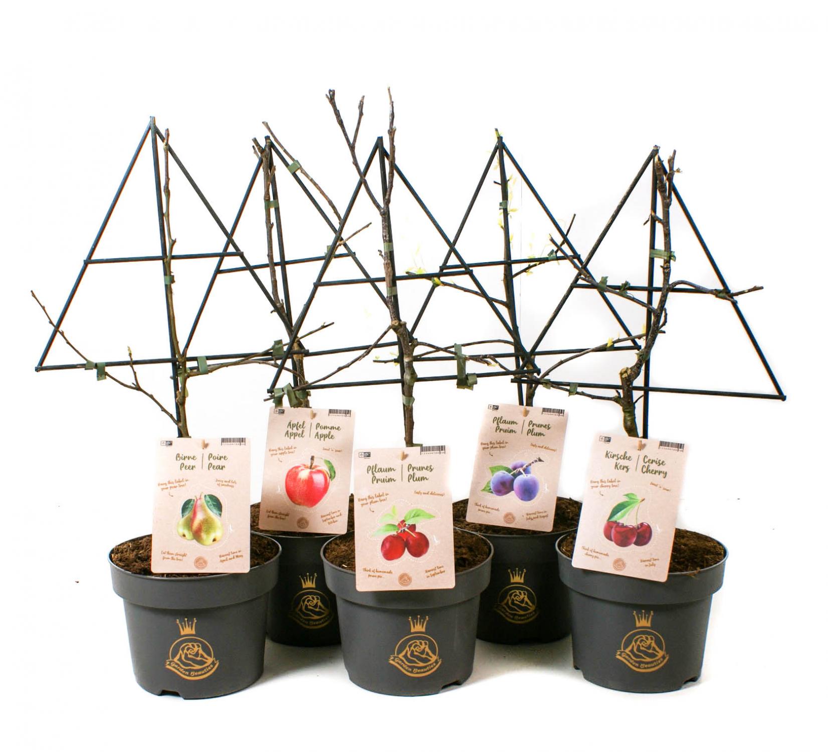 Malus dom. 'Elstar - Malus dom. 'Jonagold' - Prunus a. 'Van' - Prunus dom. 'Opal' - Prunus dom. 'Victoria - Pyrus com. 'Conference - Pyrus com. 'Doyenné du Comice'