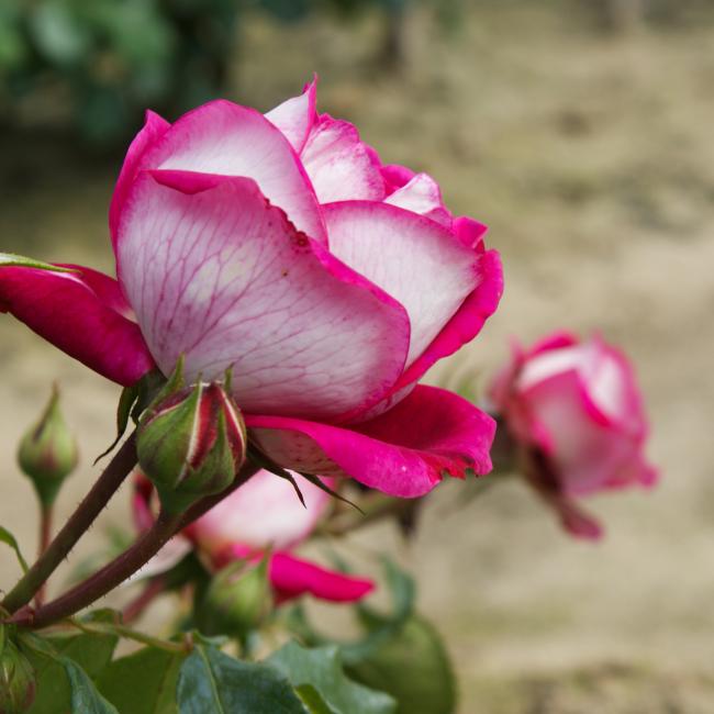 Framboos roze bloemblaadjes aan de bovenkant en aan de onderkant zijn ze zilverkleurig. Zeer bijzonder. Bloemen zijn heel dik gevuld. Meestal 1 bloem per steel. Deze roos groeit compact en bossig. Deze sterk geurende roos is geschikt als snijroos. Mooi donkergroen gezond blad.