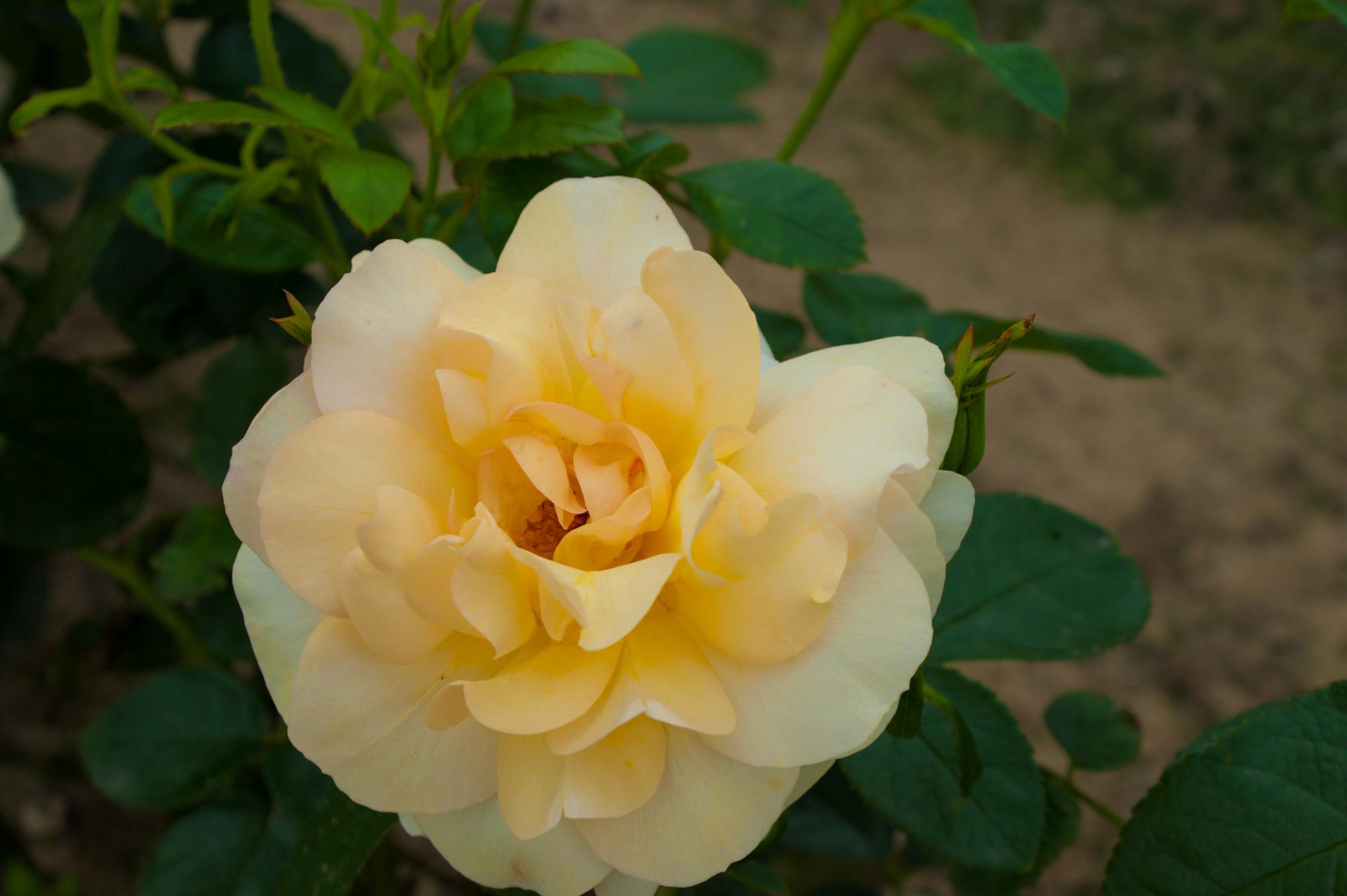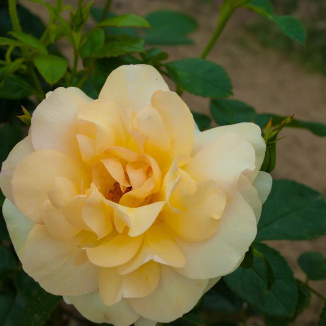 Deze mooie dubbele lichtgele bloem is een aanwinst voor elke rozentuin. Met een hoogte van ongeveer 70 cm kan hij heel goed gebruikt worden in een wat kleinere tuin. De bloem/kleur is goed bestand tegen regen en zon. Hij bloeit tot aan de eerste vorst periode telkens opnieuw. Prachtig als perkroos, maar doet het ook goed in pot.