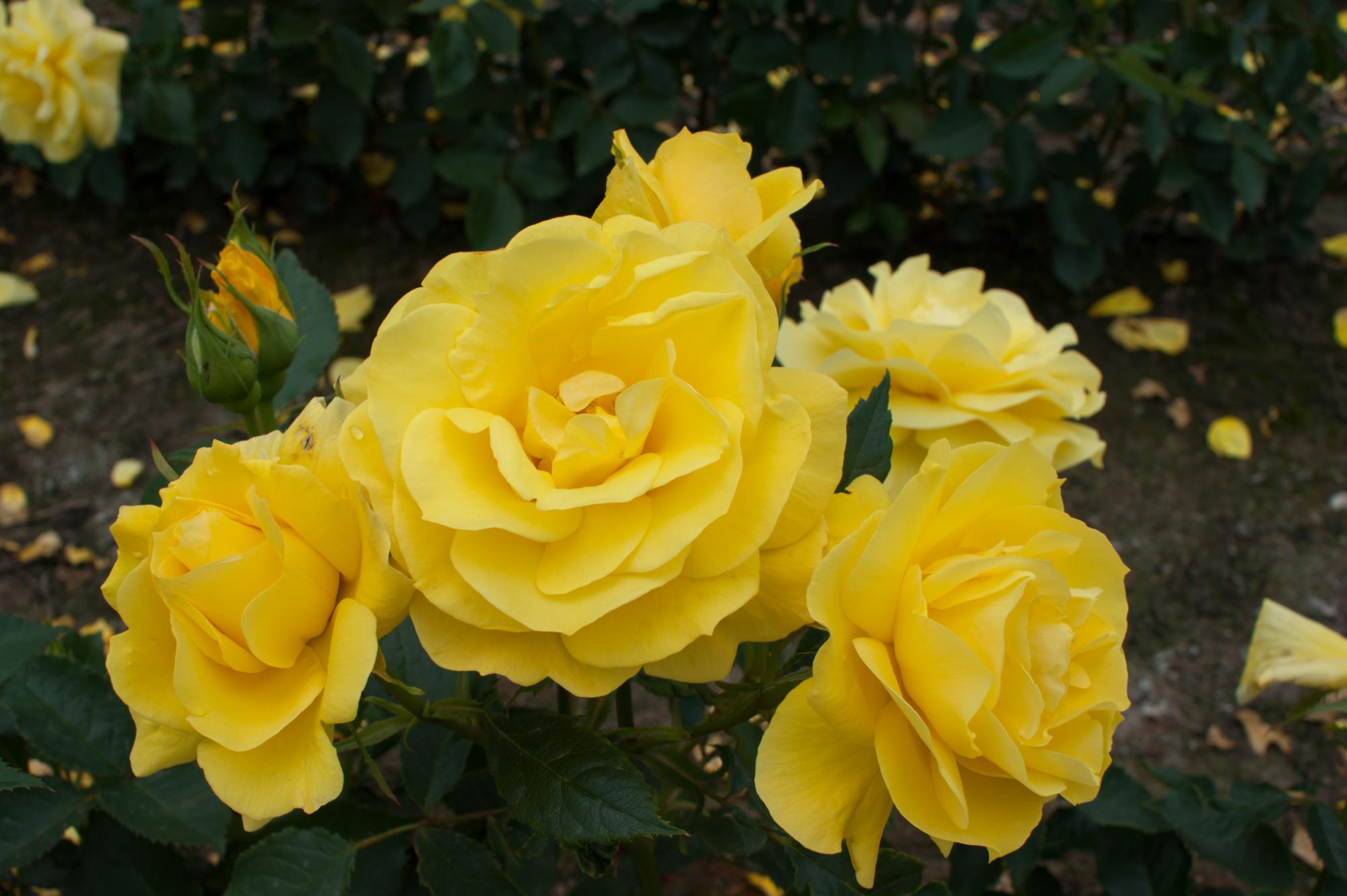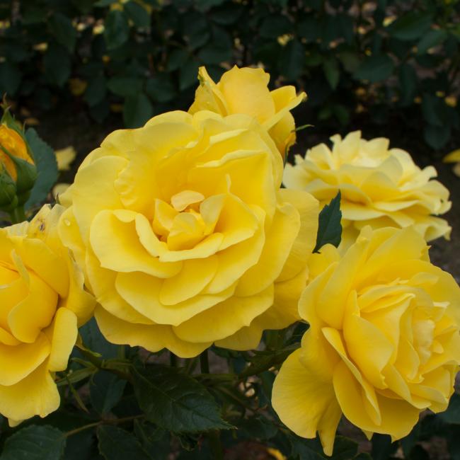 Diepgroene glanzende bladeren die lang aan de struik blijven. De roos bloeit door tot aan de eerste vorst. De bloemen staan in trossen. De roos heeft goede stevige stelen.