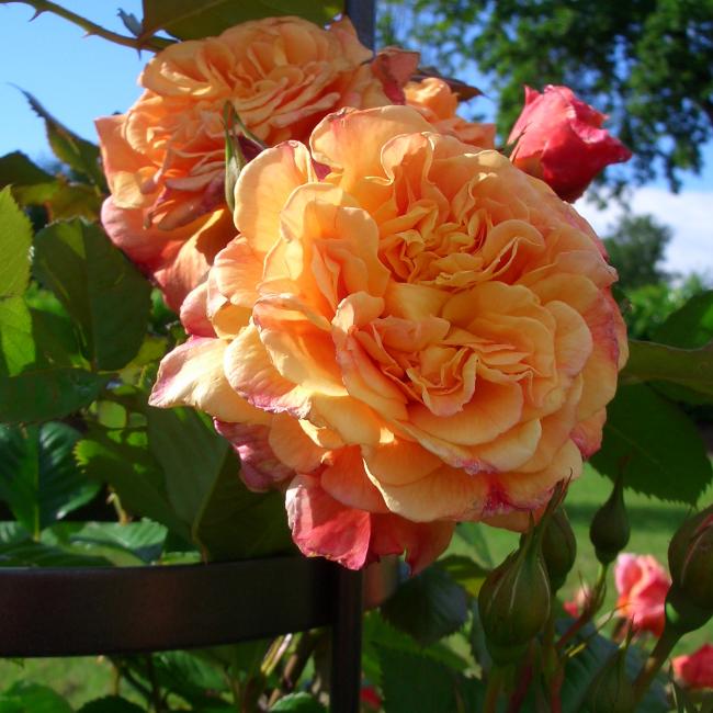 Een zeer sterke uiterst gezonde klim roos met een nostalgische bloemenpracht. De zeer aansprekende bloemenkleur zorgt voor een zeer warme ruimtelijke werking. In combinatie met een groenblijvende achtergrond ook te gebruiken als Solitair roos (Maar door zijn uitbundige groei heeft hij wel ondersteuning nodig).