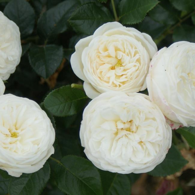 Een nostalgische roos met grote stevige trossen. De stelen zijn recht en stevig. Zeer geschikt als snijroos. De bloemen zijn middelgroot, komvormig en dik gevuld. Ziet er old fashion uit. De crème kleurige bloemen hebben groene highlights en zijn sterk geurend. Heeft donkergroen glanzend blad en is gezond.