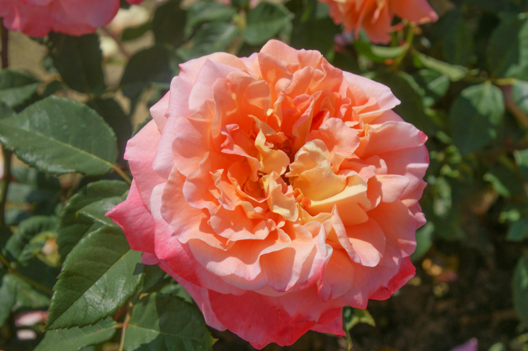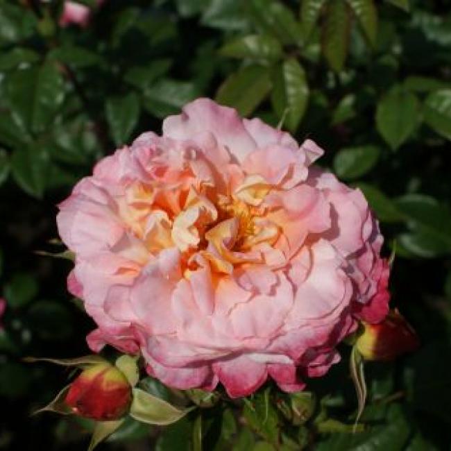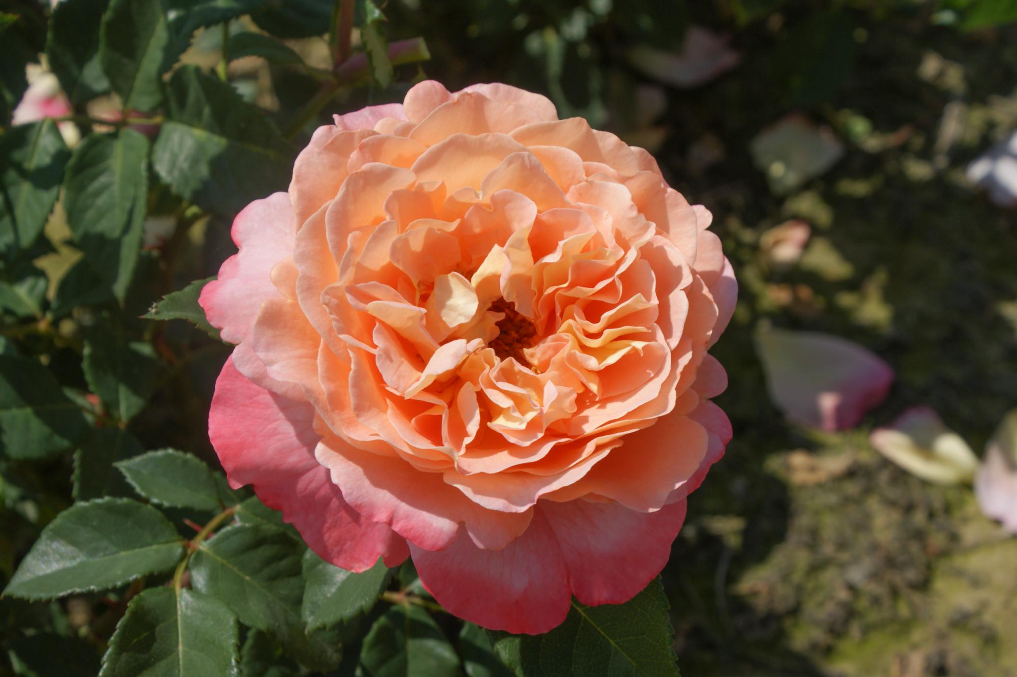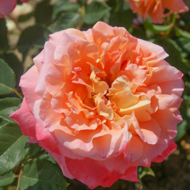 Nostalgische roos met reusachtige bloemen en Perzikkleurig met champagne roze schakeringen. Goed geschikt als snij roos voor in de vaas. Een uitermate gezonde compact groeiende struik die een aanwinst is voor uw tuin of in de pot. Een topper!