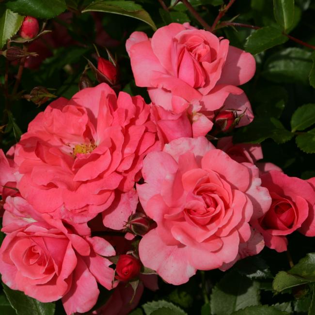 Een zeer rijkbloeiende polyantha roos die niet al te hoog wordt. Uitermate geschikt voor aanplant in kleinere tuinen.