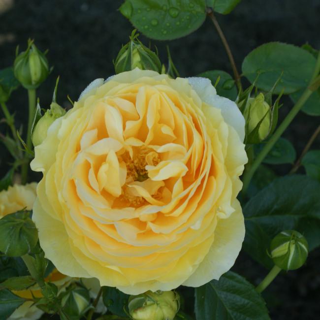 De grote komvormige bloemen van deze compacte roos zijn dik gevuld en staan op stevige stelen.  Opvallend is dat het een grootbloemige roos is maar niet zo hoog wordt en hiermee bijzonder geschikt is als potroos maar uiteraard ook als perkroos. Zeer dankbaar en gezonde roos.