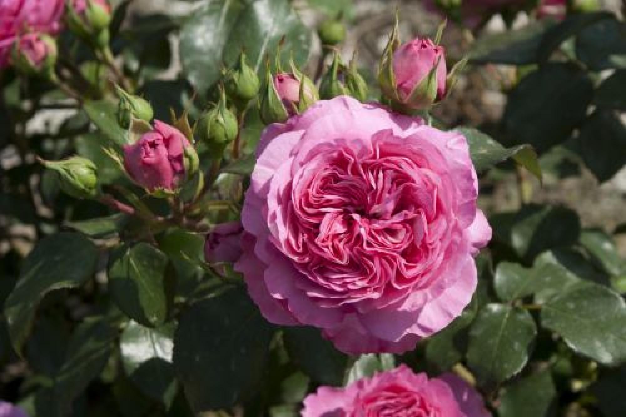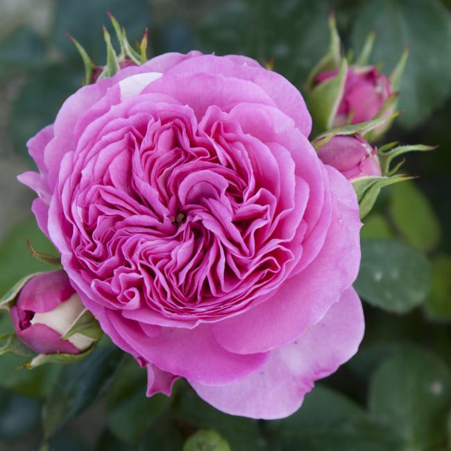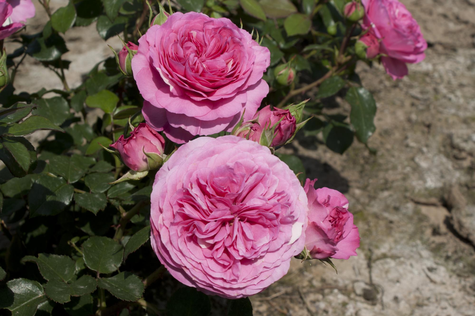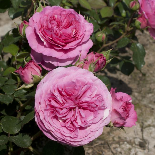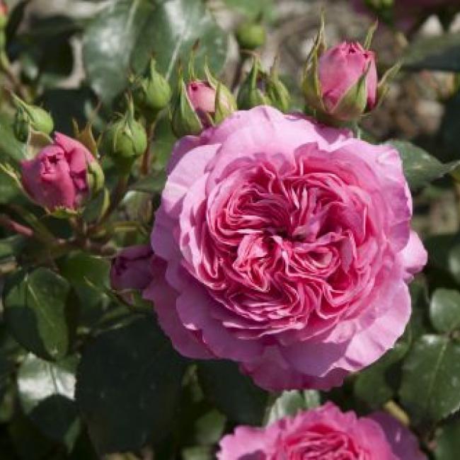 Diep roze, fuchsia kleurige bloemen met een nostalgische look sieren deze roos. De bloemen zijn middelgroot en bloeien in trossen met komvormige, platte rozet gevulde bloemen. Deze roos is goed vertakt en heeft een compacte groei. De bladeren zijn glanzend en donkergroen. Gezonde roos die niet vatbaar is voor ziektes.