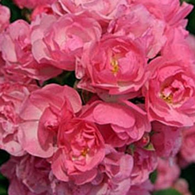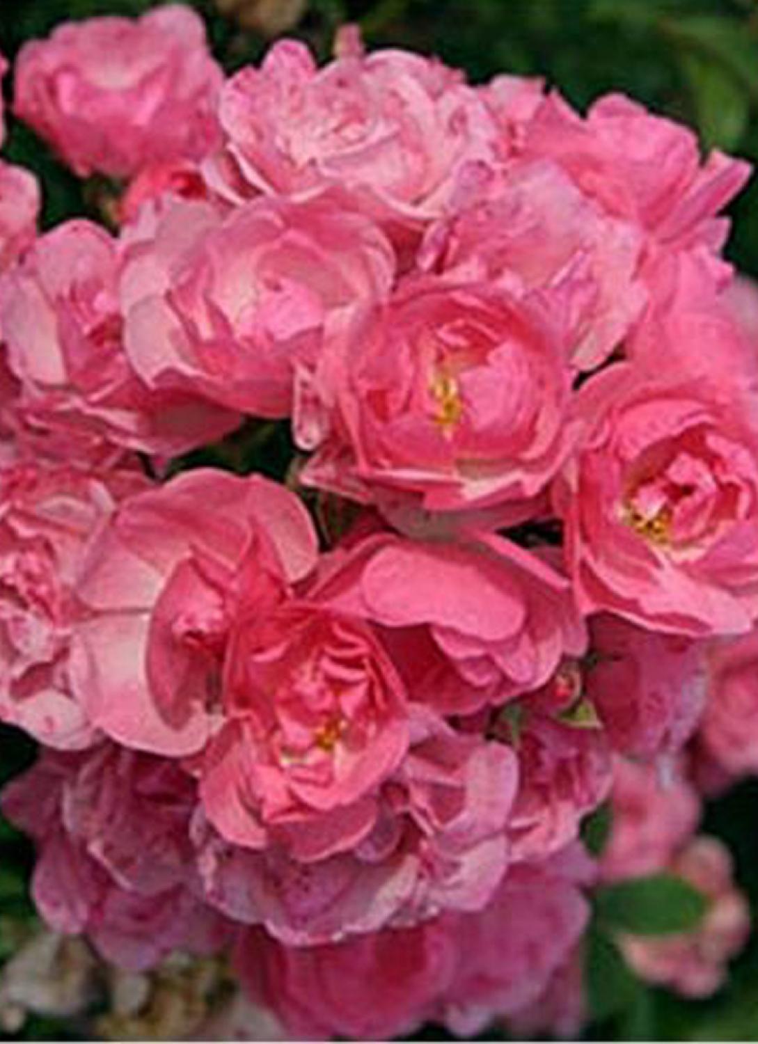 Spitse knoppen. Halfgevulde maar kleine baby roze bloemen. Groeit bossig, rond en overhangend. Wordt 60cm tot 70cm breed en hoog. Middelgroen, glanzend, klein gezond blad. Een enorm rijke bloeier die qua kleur niet vervaagt. Deze roos is licht geurend, erg dankbaar en gezond.