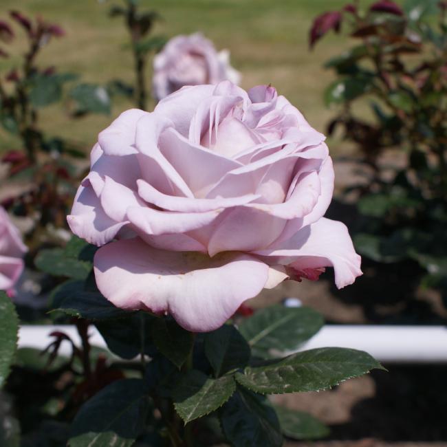 Een grootbloemige Theehybride met dikke gevulde bloemen. Een klassieke rozenvorm, maar uniek en zeldzaam in zijn kleur. De gelijkmatige zilver lila-lavendel kleurige bloemen zijn werkelijk bijzonder. Deze roos heeft een licht fruitige geur. De struik is robuust en bloeit goed door. Is geschikt als perk en als snijroos.