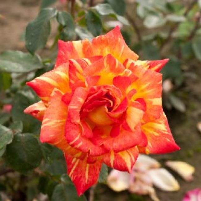 Er zijn maar weinig rozen met zo’n uitbundige kleurschakering. Door zijn sterke groeikracht geeft hij gedurende het seizoen een haast onophoudelijke bloei. De bloemkleur combineert zeer mooi met het heldergroen van de gezonde bladeren.