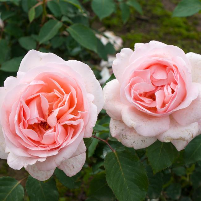 Clair Renaissance heeft zachte perzik-roze bloemen met een oude roos geurende parfum. Goed ziekte resistentie.