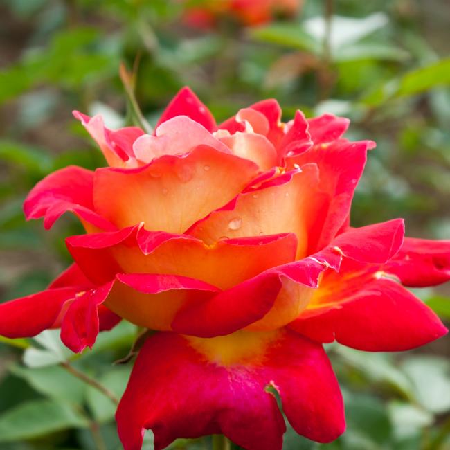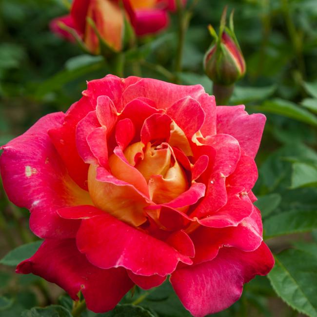 Deze roos heeft dik gevulde bloemen die opvallen door hun bijzondere kleur. De bovenkant van de bloemblaadjes zijn rood en de onderkant heeft een warme gele kleur. Deze gezonde klimroos is een snelle groeier en bereikt eenvoudig een hoogte van 3 m.