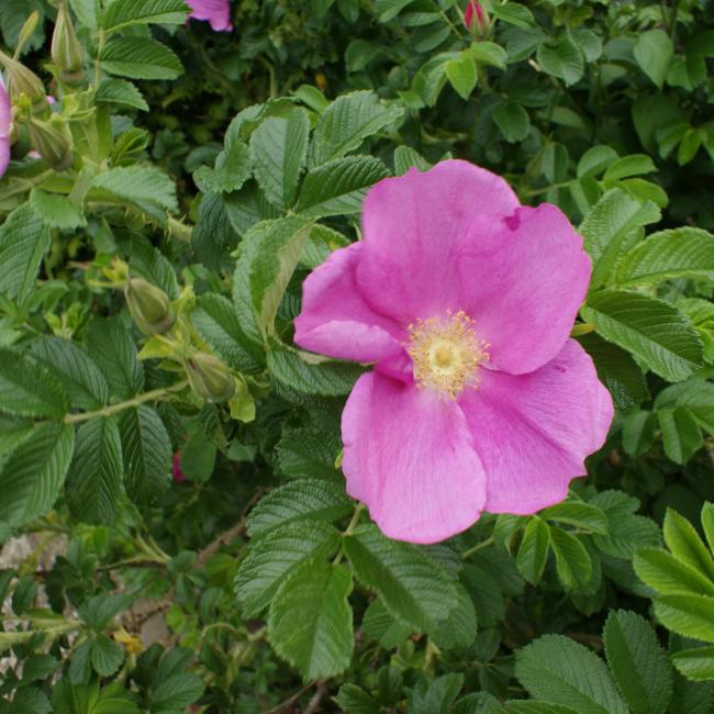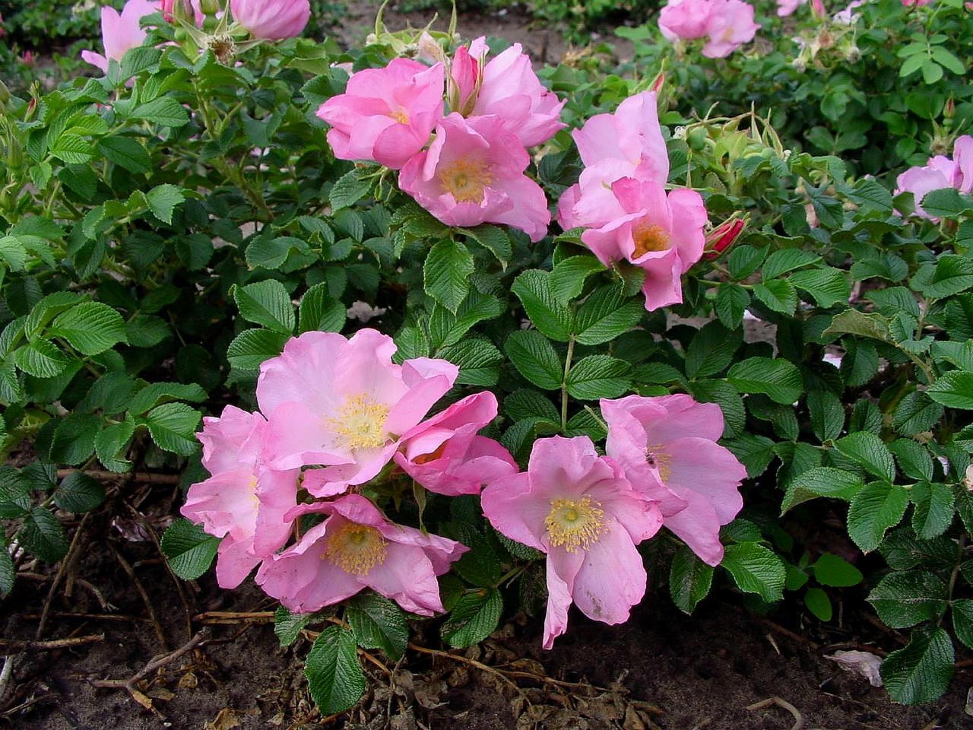 Een dichte struik. Een van de mooiste enkele rozen. Zeer grote roze/rode bloemen, gevolgd door felrode bottels. Bloeit van midden zomer tot de herfst. Kleiner dan de meeste rugosa soorten. Prachtig als lage haag, maar ook geschikt voor in de border. Een zeer gezonde roos en onderhoudsvrij. Een topper!