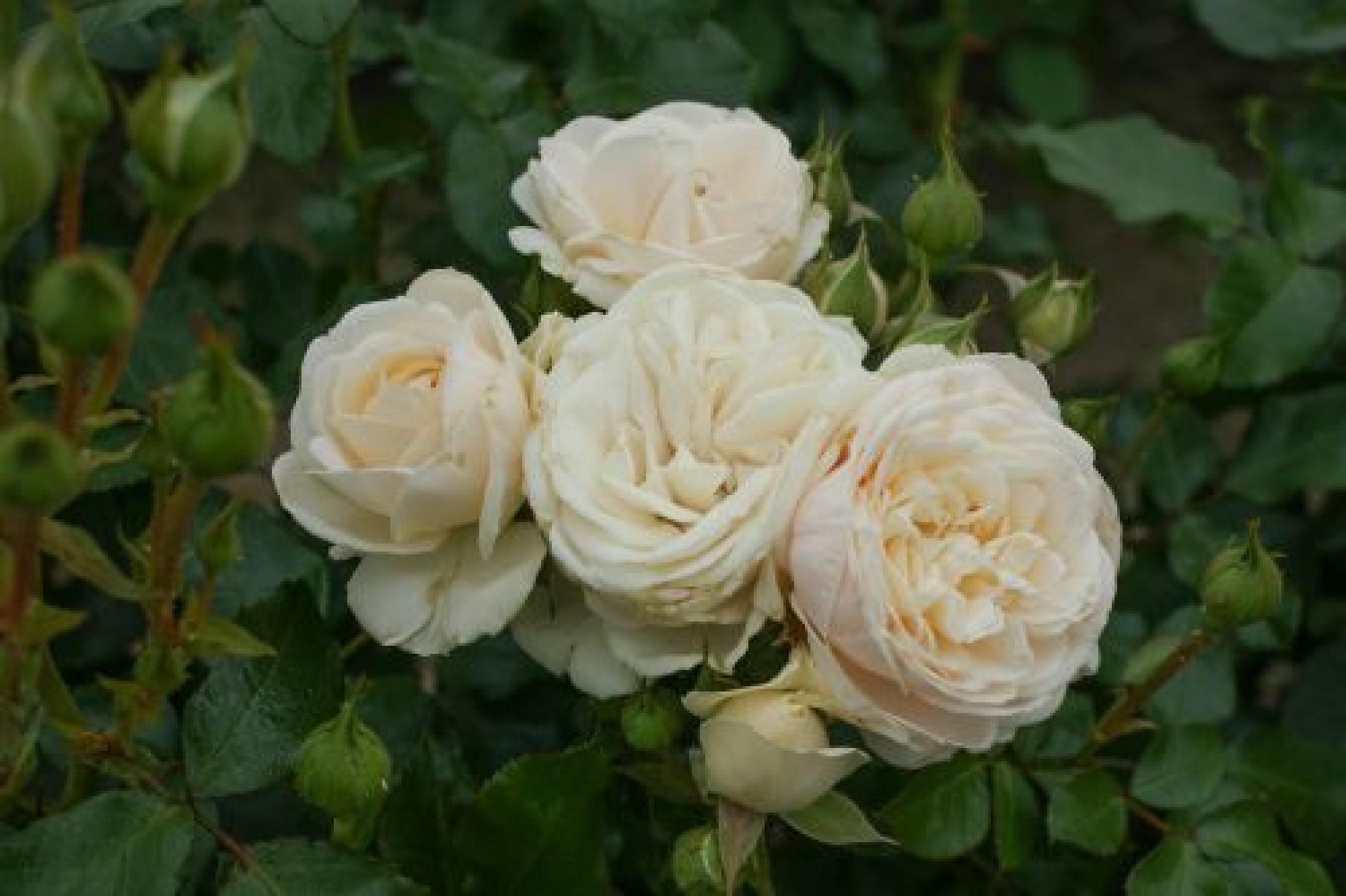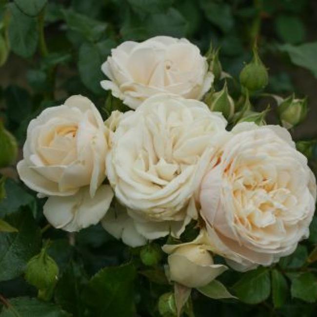 Trossen met dik gevulde, gekwartierde bloemen verschijnen aan deze struik. De bloemen zijn wit en soms hebben ze een roze gloed. het is een compacte groeier, erg mooi voor in het perk, maar ook in de pot.