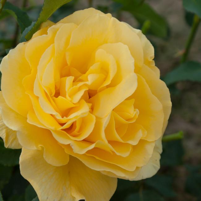 Dikke trossen met wel 3-4 grote gevulde bloemen per steel. Deze Theehybride heeft knal gele bloemen en komt bijzonder goed tot zijn recht als perkroos. Het een is krachtige doorbloeiende roos, die wel 80-100 cm hoog kan worden.