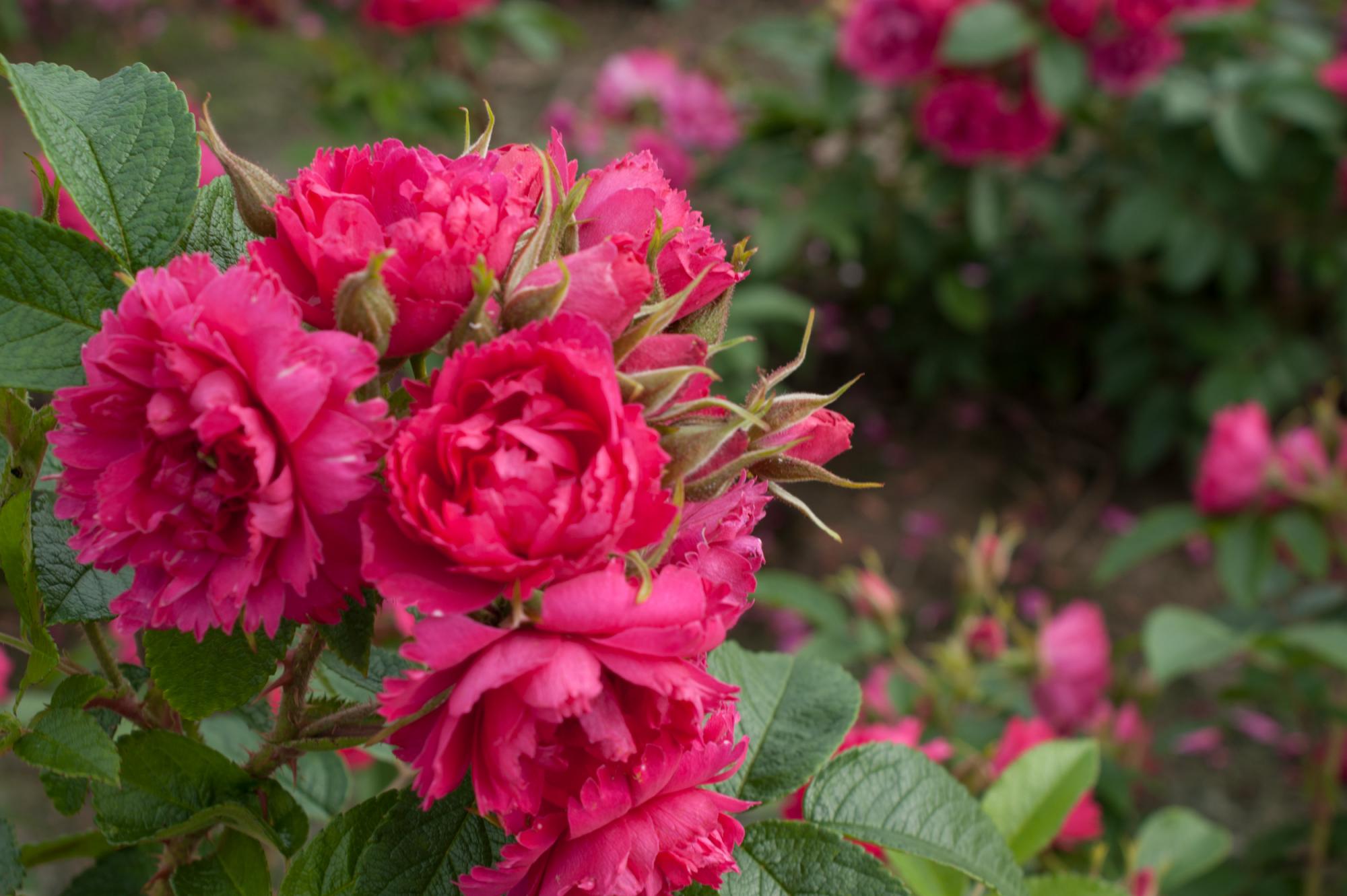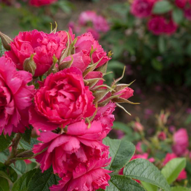 Kleine gevulde roos, met gezaagde bloemblaadjes. Donkergroen leerachtig blad en veel stekels op de stelen. Hij kan in de schaduw. Heeft een rijke bloei in de zomer. Geschikt voor lage haagjes, als perkroos, maar ook als solitair