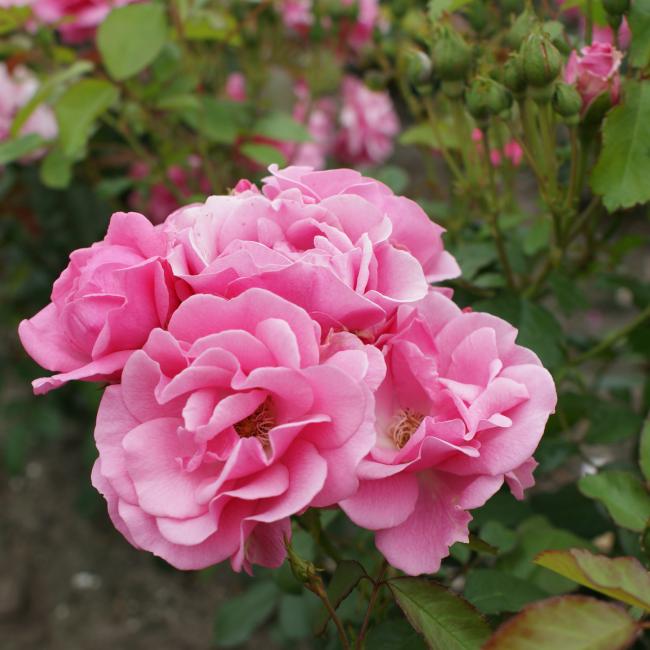 Middelgrote halfgevulde bloemen met een doorsnee van 5-7 cm. Blijft laag maar groeit wel breed. Compact en dicht vertakt.