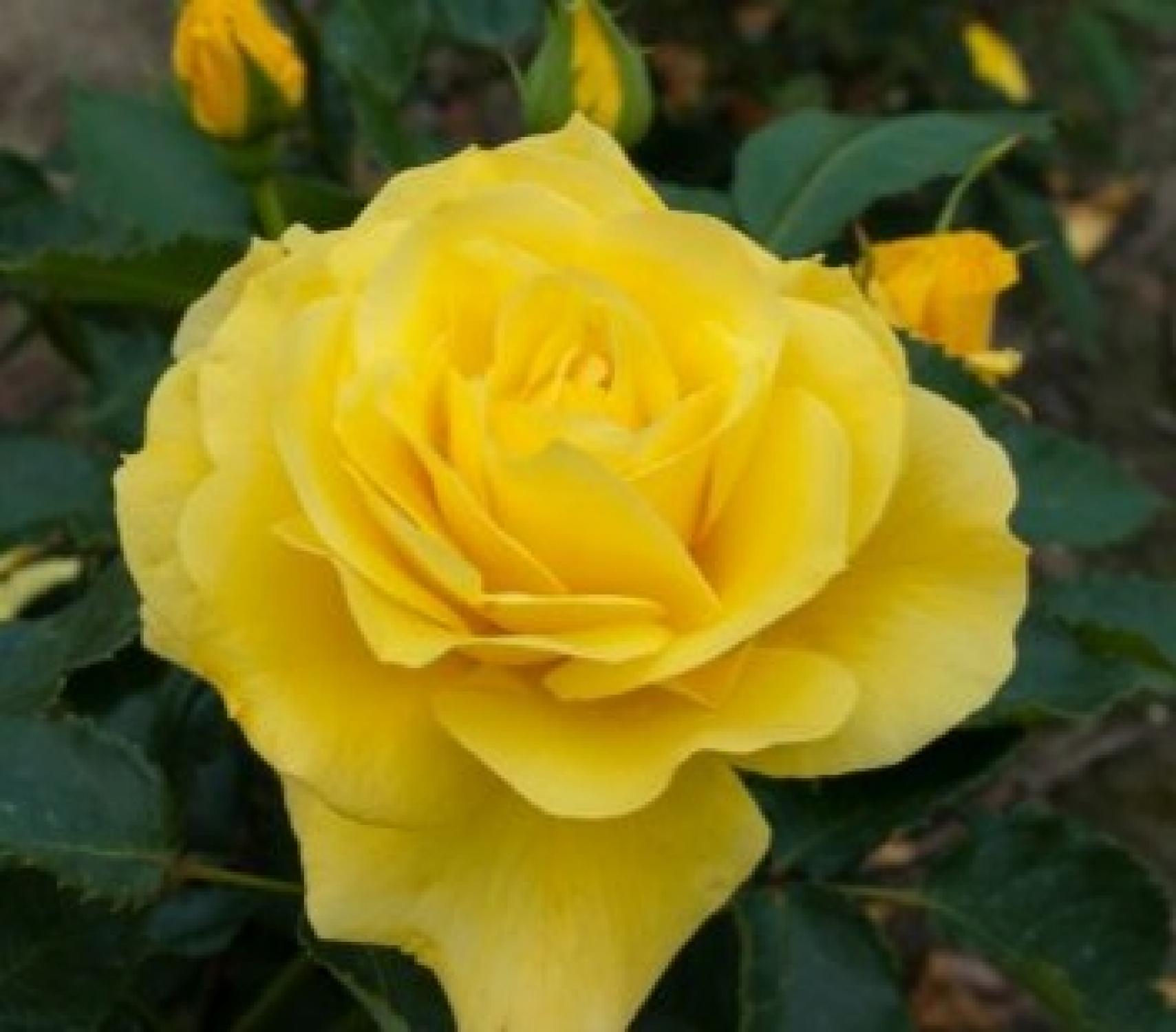 Grote dichte gevulde knop. Sterke bossige groei. Mooie gele kleur die niet vervaagd. De bloem heeft een doorsnee van 7 cm en is los gevuld. Sterke roos die rechtop groeit, maar goed vertakt. De bladeren zijn middelgroot en glanzend groen. Deze roos heeft goede grond nodig.De roos heeft een hele frisse geur.