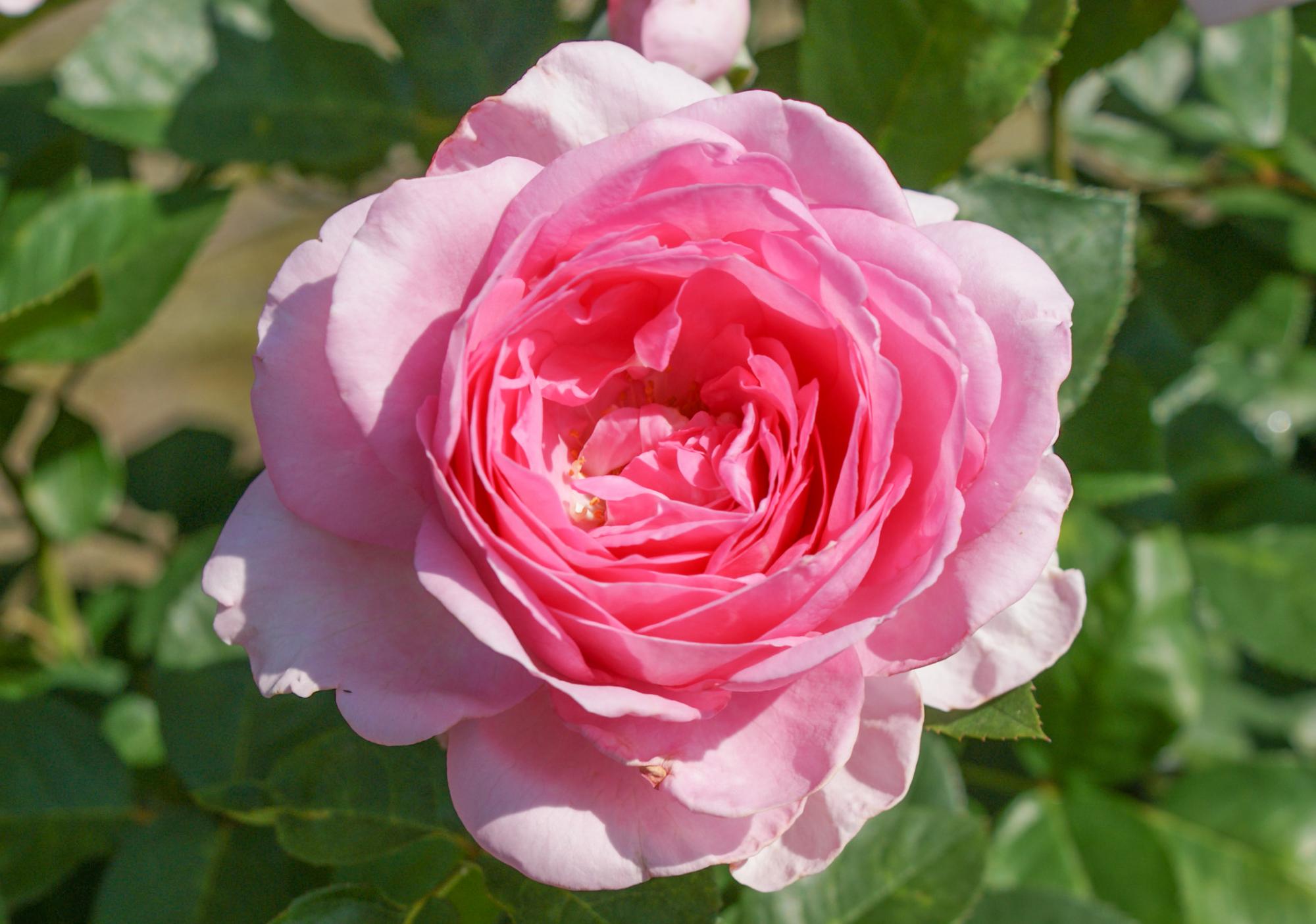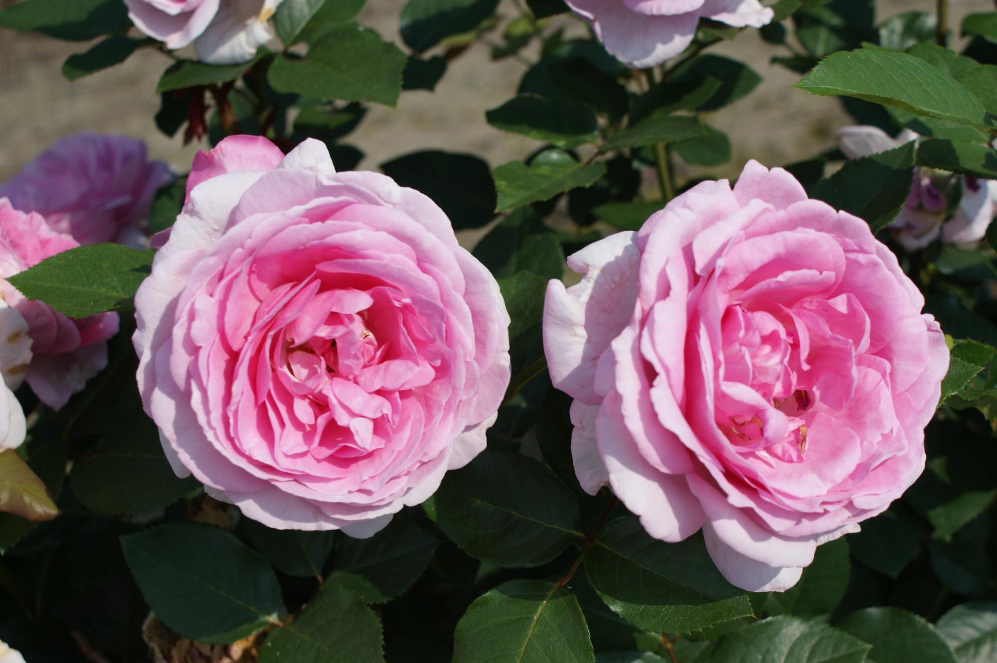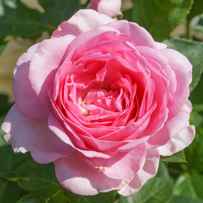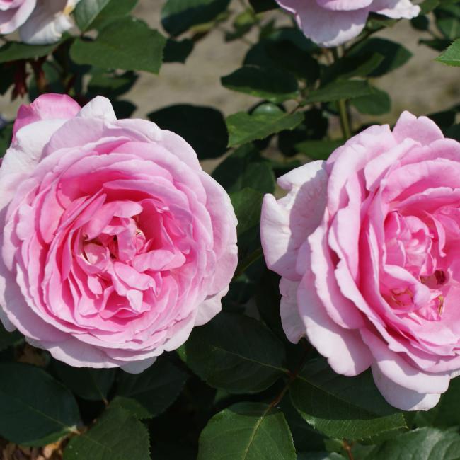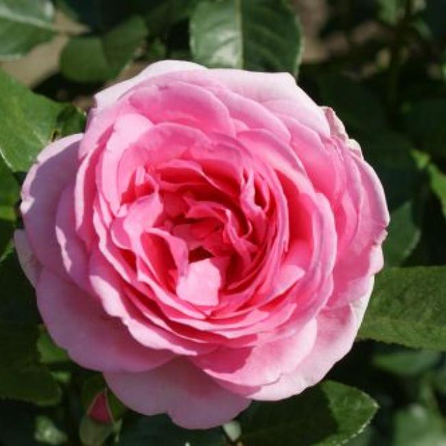 Deze heesterroos heeft opvallend grote bloemen. Ze zijn komvormig en dik gevuld Roze- lila van kleur. Deze roos groeit met iets gebogen takken, dit geeft een weelderig effect. De bladeren zijn iets glanzend.