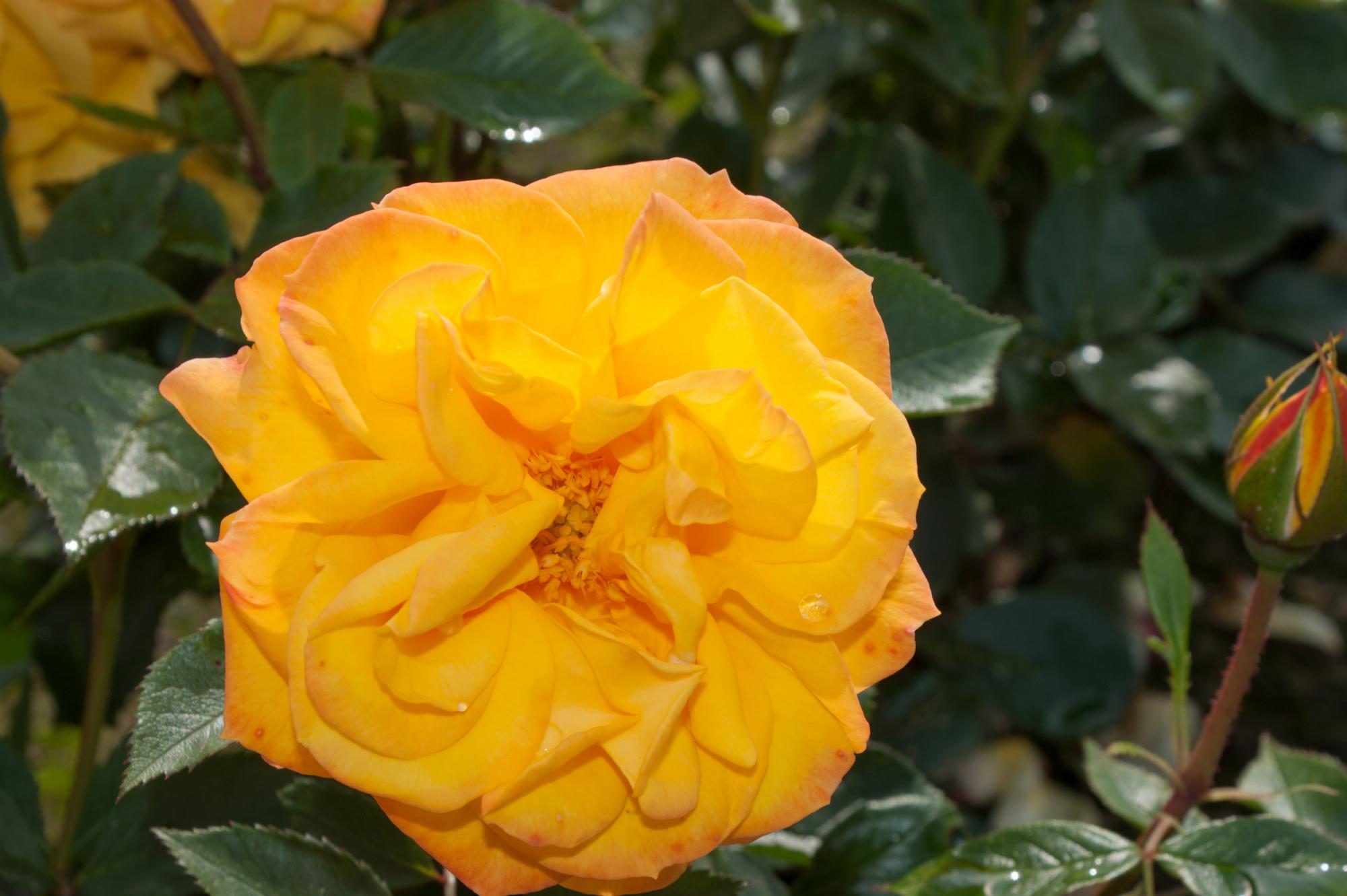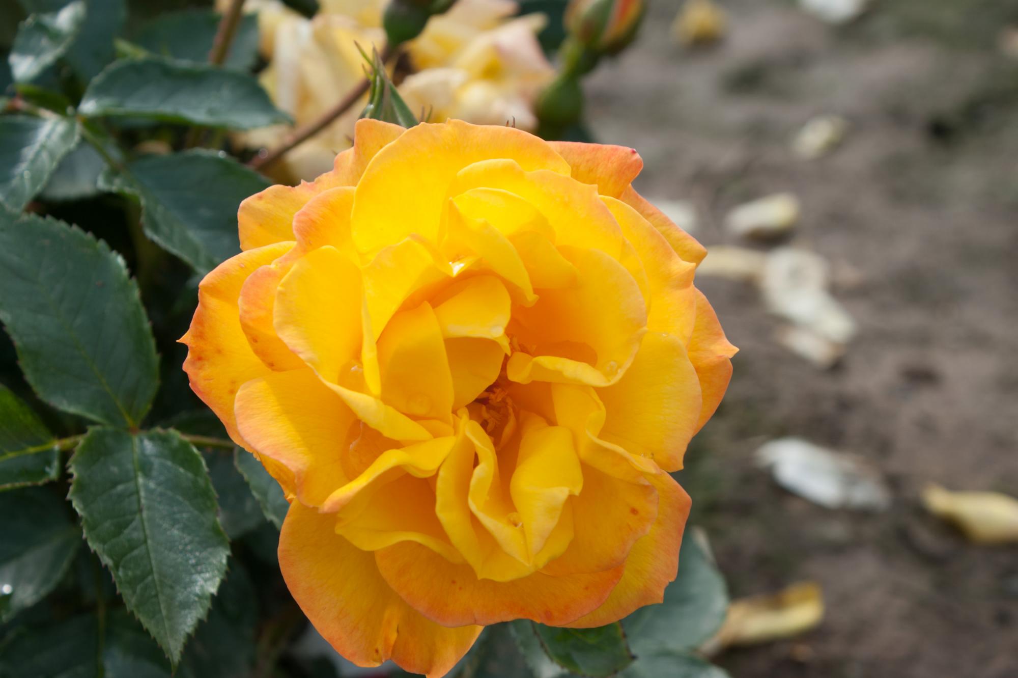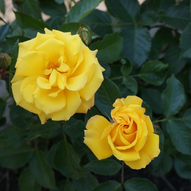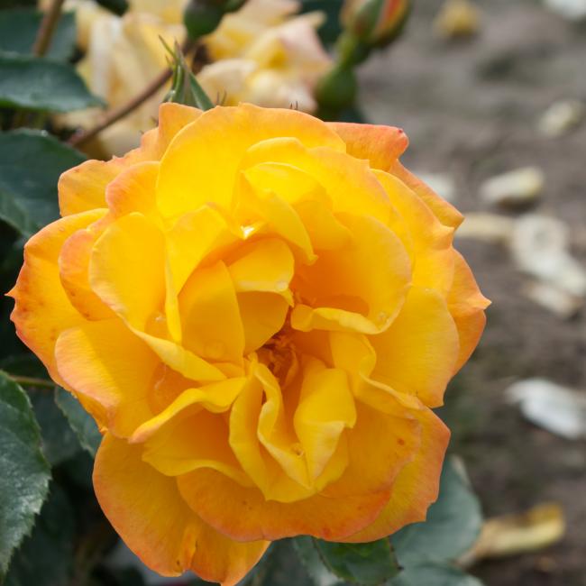 Grote gele gevulde bloemen met een bronskleurige rand en ongeveer 20 bloemblaadjes verschijnen in trossen. Een overvloedig bloeiende roos. Glanzend diepgroen blad. Is goed bestand tegen ziekten. Bloei periode voorjaar en zomer. Zeer gezonde, sterke roos met een recht en bossig karakter. Volle zon en vruchtbare grond leveren het beste resultaat. Na de bloei licht snoeien. Heeft een zoete geur.