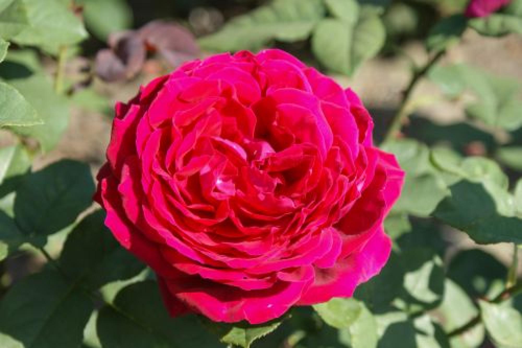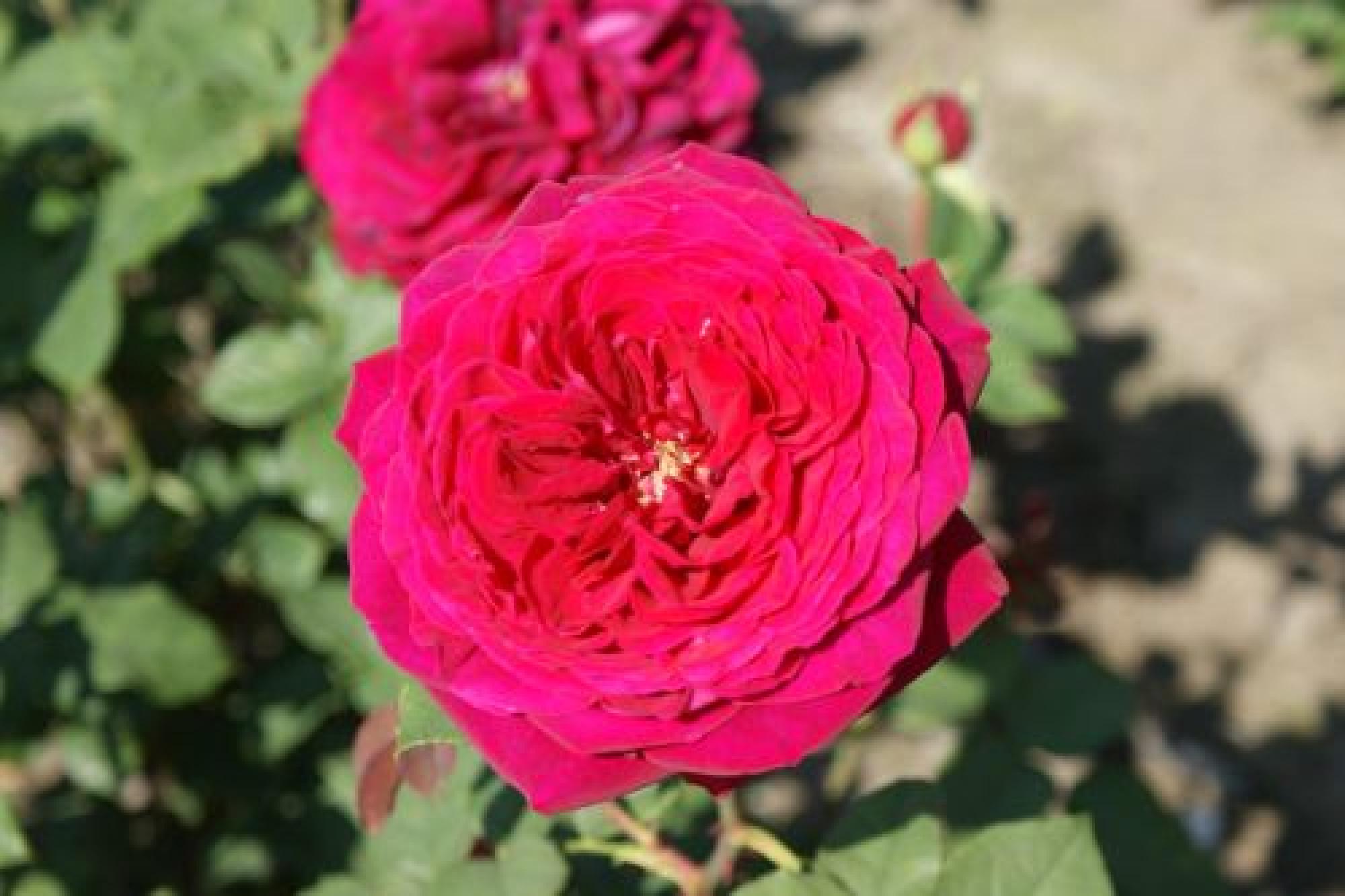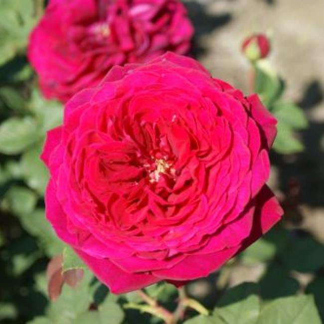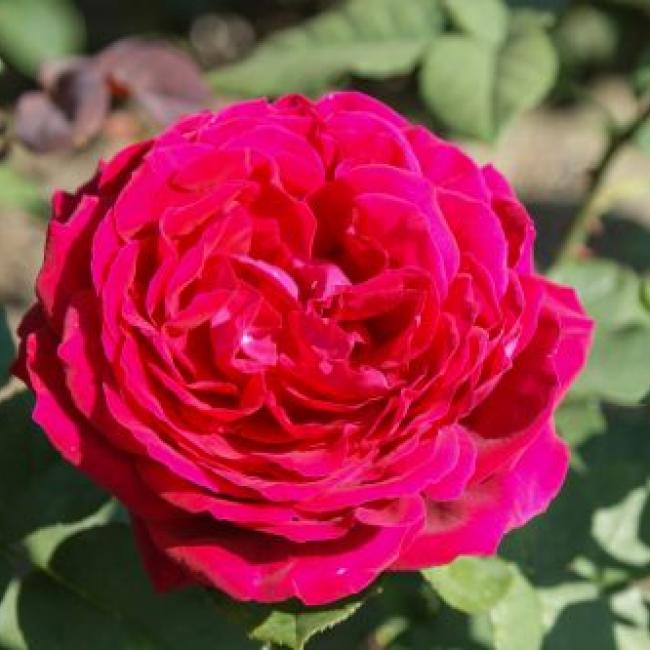 Een "Old Fashion" roos met grote, gekwartierde bloemen. De bloemen zijn purper/violet van kleur. Deze grootbloemige roos bloeit in trossen van telkens 2 tot 3 dikke bloemen. Dit zijn de nieuwste rozen met als eigenschap dat ze grootbloemig zijn, compact groeien en geuren. Deze roos heeft iets glanzend blad.