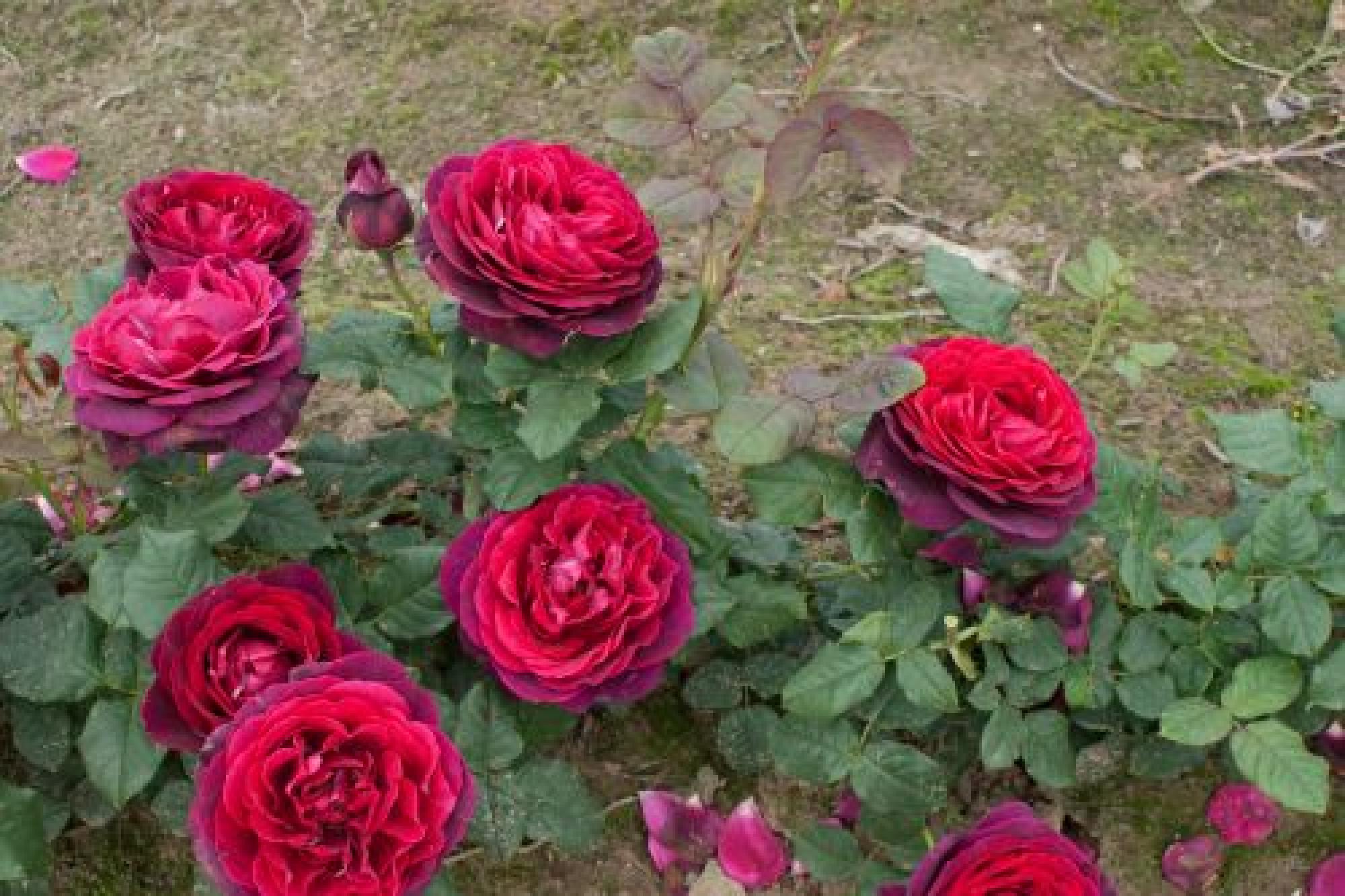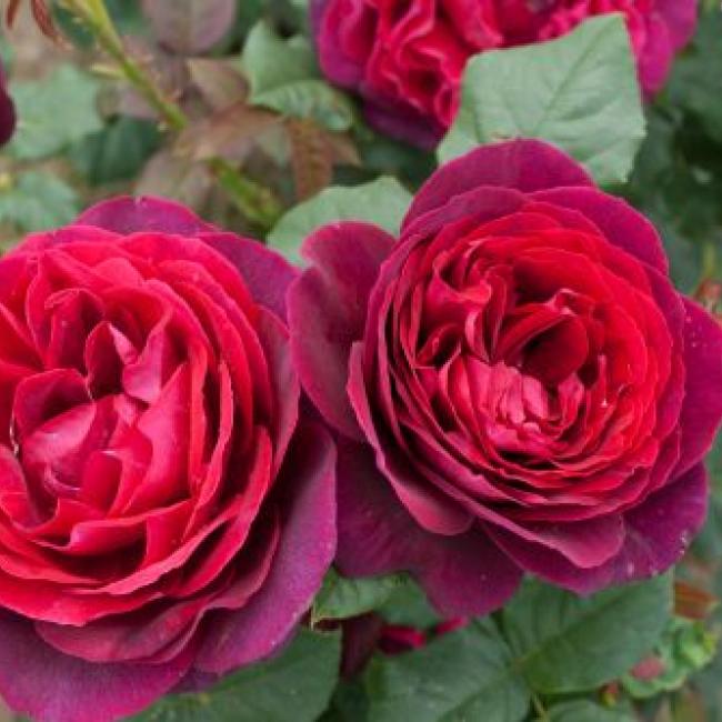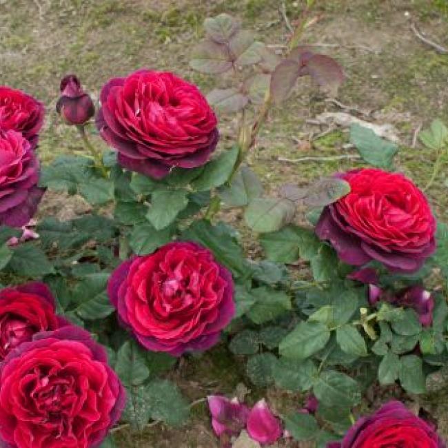 Purper bloemen met een donkerrood hart. Zeer bijzonder. De roos ziet er elke dag donkerder uit. De bloemen zijn groot, dik, komvormig gevuld. Zien er Old fashion uit door haar gekwartierde bloemvorm. Heeft donker groen blad.