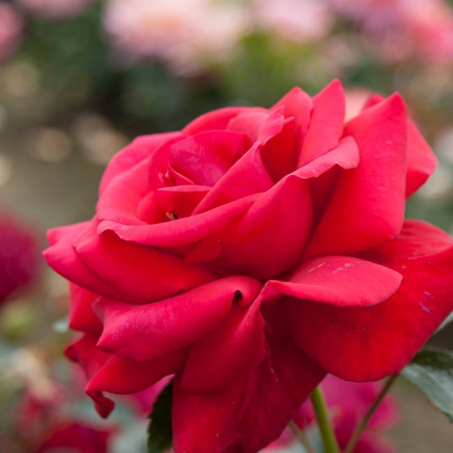 Deze roos heeft opvallend lange slanke knoppen waar dik, klassiek, gevulde rozen uit komen. De bloemen zijn velvet rood en zien er fluweelachtig uit. De bloemen staan op lange stelen en hebben pruimkleurgie glanzende bladeren. Prachtig! De roos geurt naar framboos en is mede daarom erg geschikt als snijroos.
