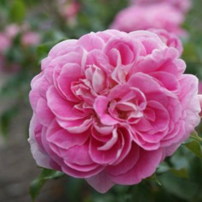 Roze met zilveren bladrandjes. Kleine knoppen, dankbare bloeier.