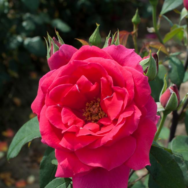 Een krachtige roos. Veel doorns op de stelen. Zeer winterhard. Een heerlijk geurende roos. Deze roos is met haar framboos rode bloemen een populaire roos.