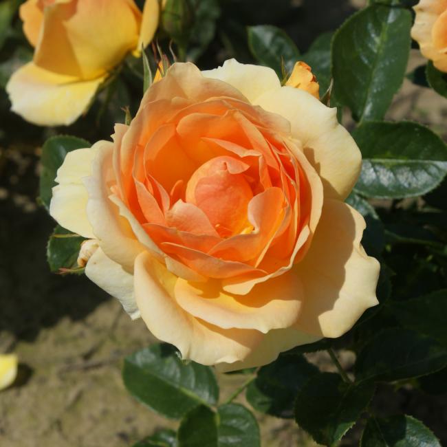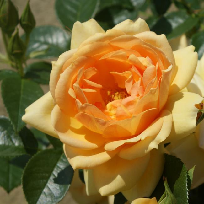 Amberkleurig knoppen verkleuren in abrikoos kleurig bloemen. Naar mate de bloem ouder word, verkleuren de bloemen lichter. De bloemen zijn licht gevuld en bloeien in kleine trossen de hele zomer door.