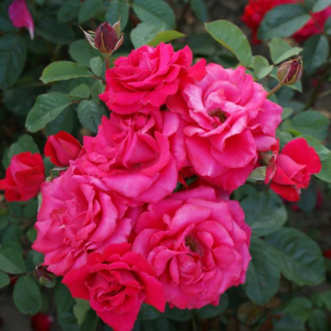Hoge, rechte en sterke roos tot 3 meter hoogte. Met een donker, glanzend blad dat goed verdeeld over de stengels staat. De grote en welgevormde scharlakenrode bloemen zijn zeer regen vast. Het is een onvermoeibare bloeier die uw tuin het gehele seizoen voorziet van een bloempracht. De bloemen hebben een goede houdbaarheid.