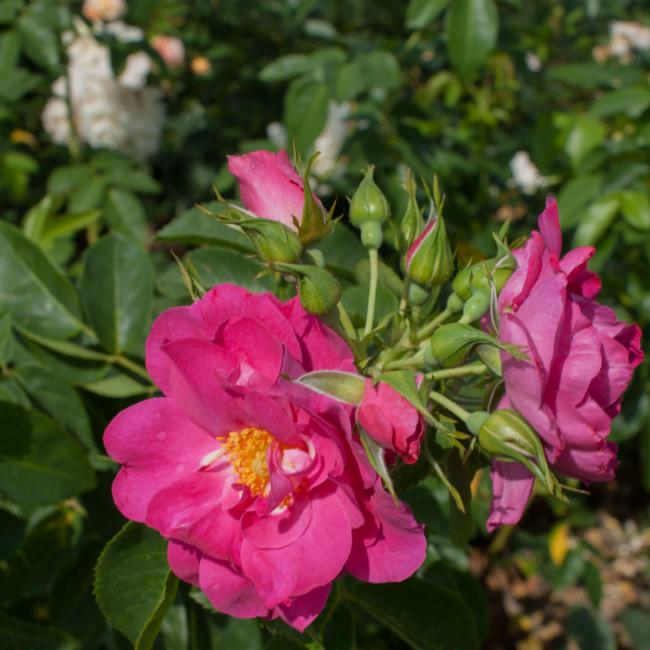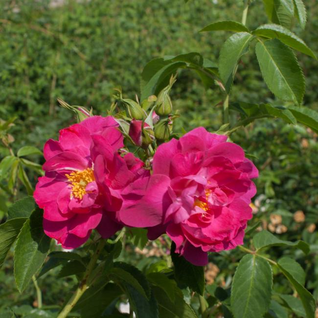 De heldere rode bloemen in contrast met de donkergroene glanzende bladeren zijn de kenmerken van deze roos. Bloeien van begin juni tot aan midden juli, hierna herhaalt dit zich tot aan de vorst. Zeer krachtige groei, licht geurend