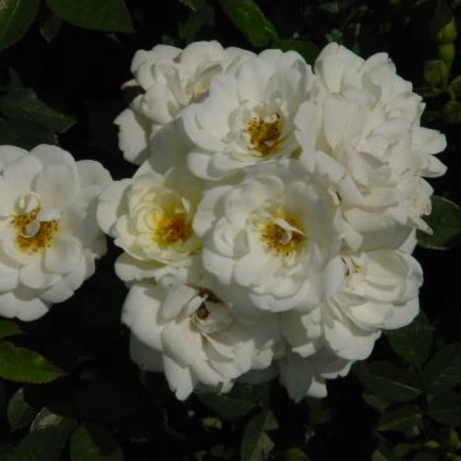 Een bodembedekkende roos. Herbloeiend. Krijgt grote trossen semi-dubbel bloemen aan de uitlopers. Compacte en dichte roos. Roos is licht geurend.