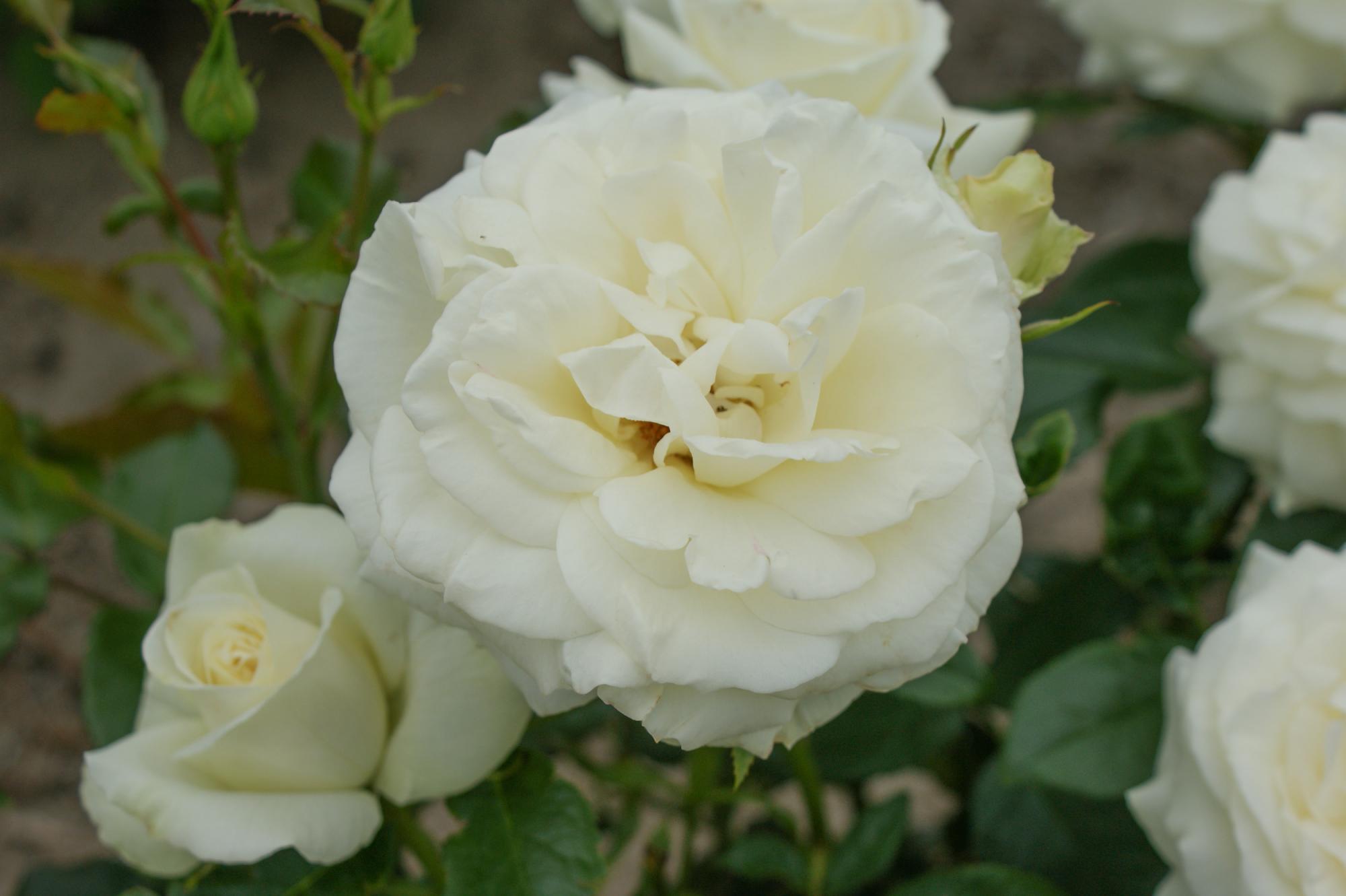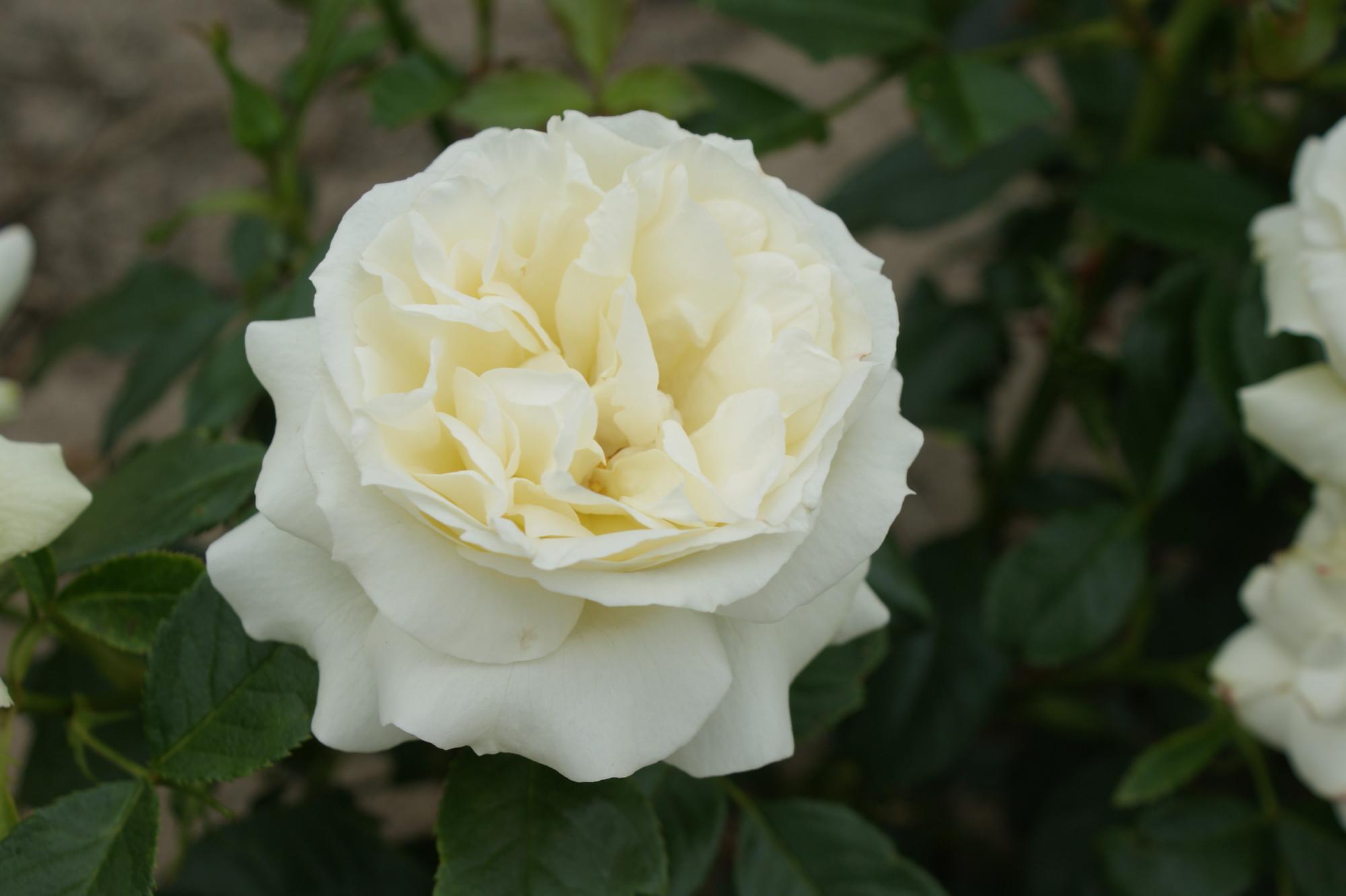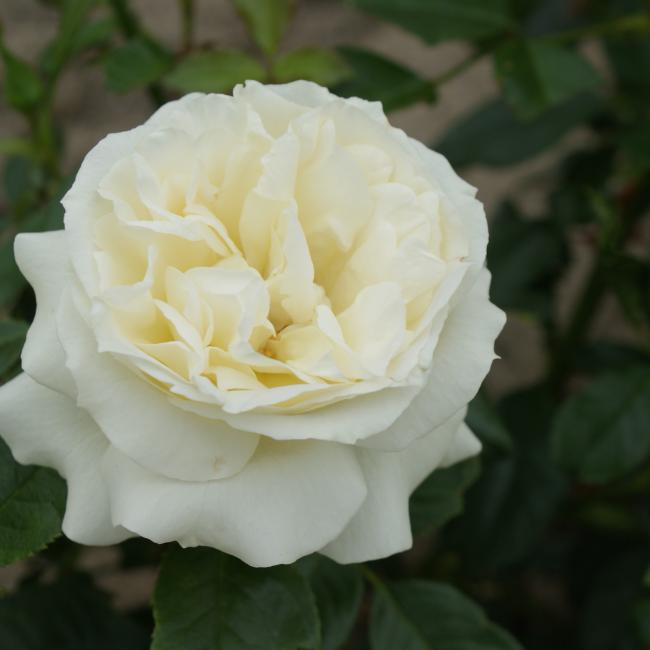 De grote, gevulde en geurende bloemen hebben een bijzondere witte kleur. De roos is goed slechtweer -en hittebestendig. De bloei is rijk en langdurig. Bossige gedrongen groeiwijze.