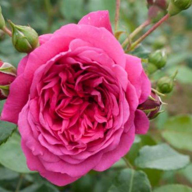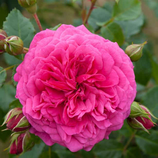 Dieproze, opvallend dikgevulde, beetje platte bloemen hangen in dikke trossen aan deze klimroos. Het is een gezonde roos met mooi donkergroen blad. Deze roos heeft een kruidige geur.