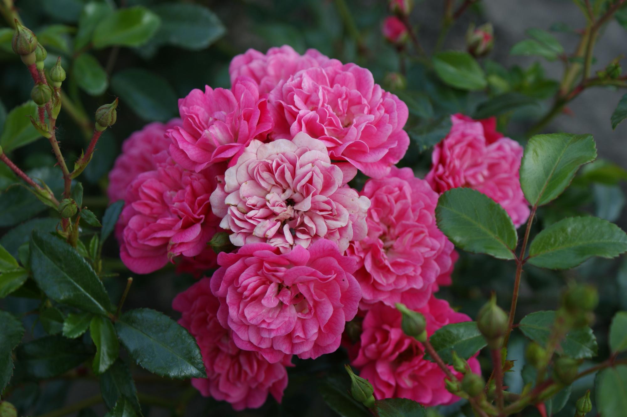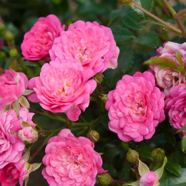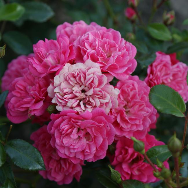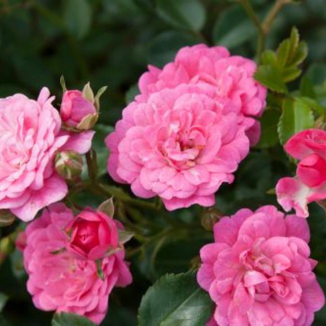 Sterke en gezonde roos. Bloeit lang door. Kleine gevulde bloemen.