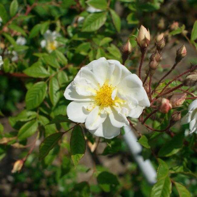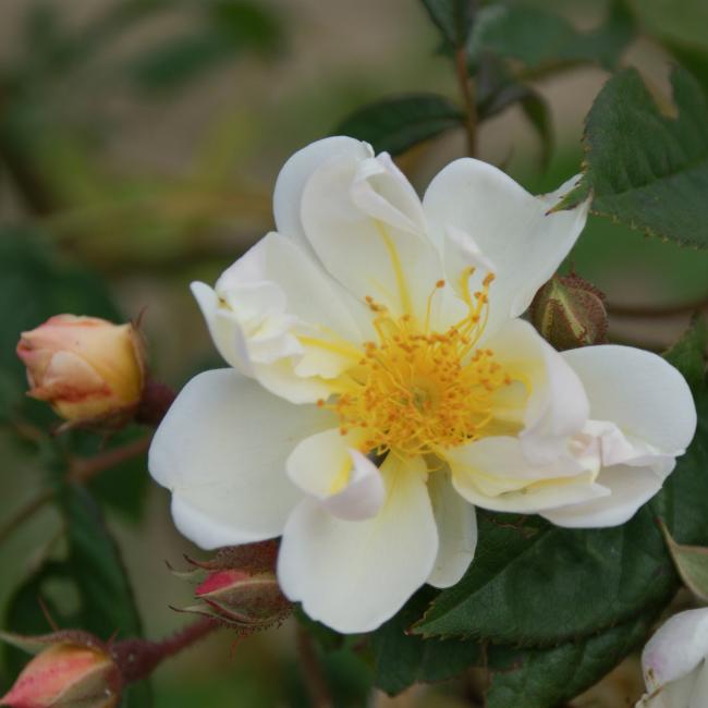 Deze veelzeidige roos valt onder de groep rambler rozen. Rozen die ook schaduw kunnen verdragen en een enorme groeikracht hebben. Deze rambler roos is er een die je ook als sollitair kunt planten. Hij bloeit 1 maal zeer uitbundig met kleine enkelvoudige wittige bloemetjes. De meeldraden zijn duidelijk zichtbaar en is sterk geurend. In de herfst krijgt deze roos ook nog kleine botteltjes. de Betekenis van deze roos is : ' De gelukkige vondst".