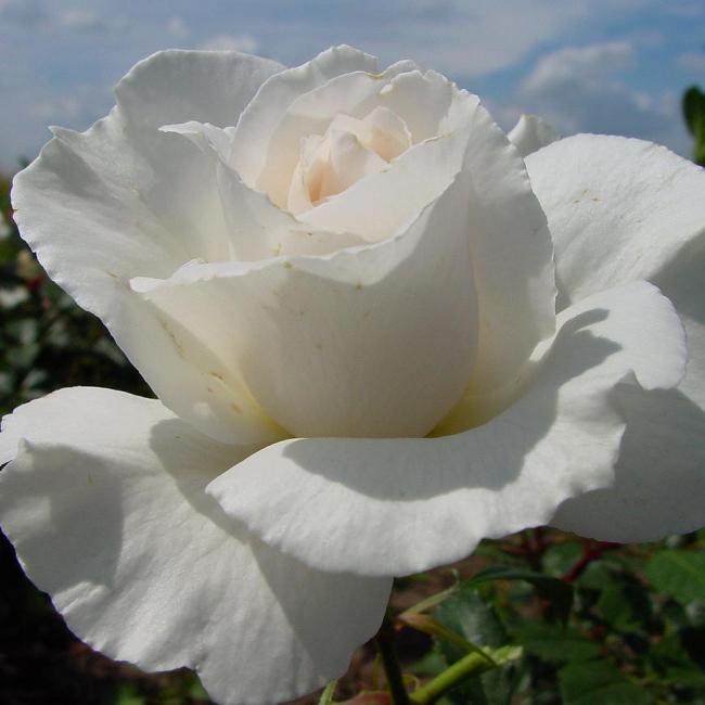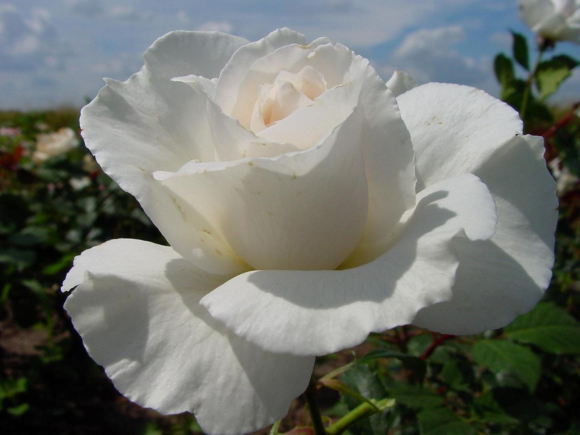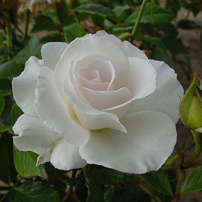 Deze parelwitte floribunda roos is een der favorieten bij liefhebbers, mede door haar schoonheid, maar ook door haar betoverende geur. Bloeit weelderig maar compact, bossig, maar blijft laag. Goede gezondheid.