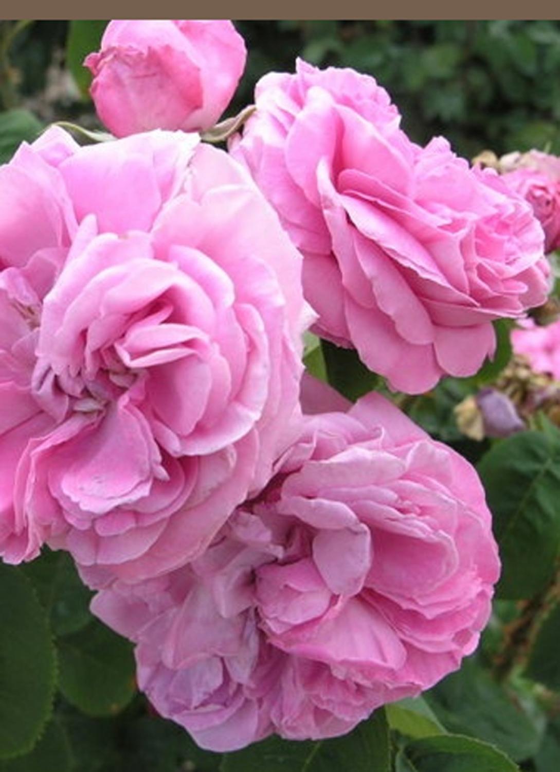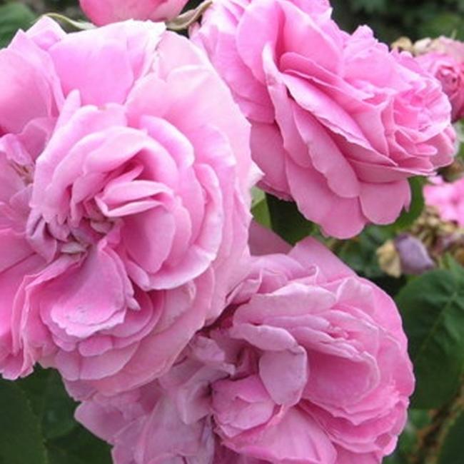 Enorme, volle bloemen met een intens roze kleur. Het gewicht van de bloemen buigt de takken vaak naar beneden. Overvloedig gebladerte. Een weelderige schoonheid, die kan worden aangemoedigd over een lage muur te groeien. Sterke en heerlijke geur.