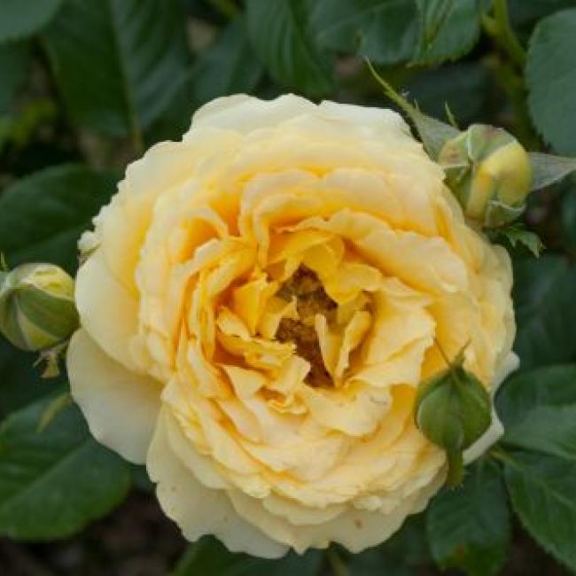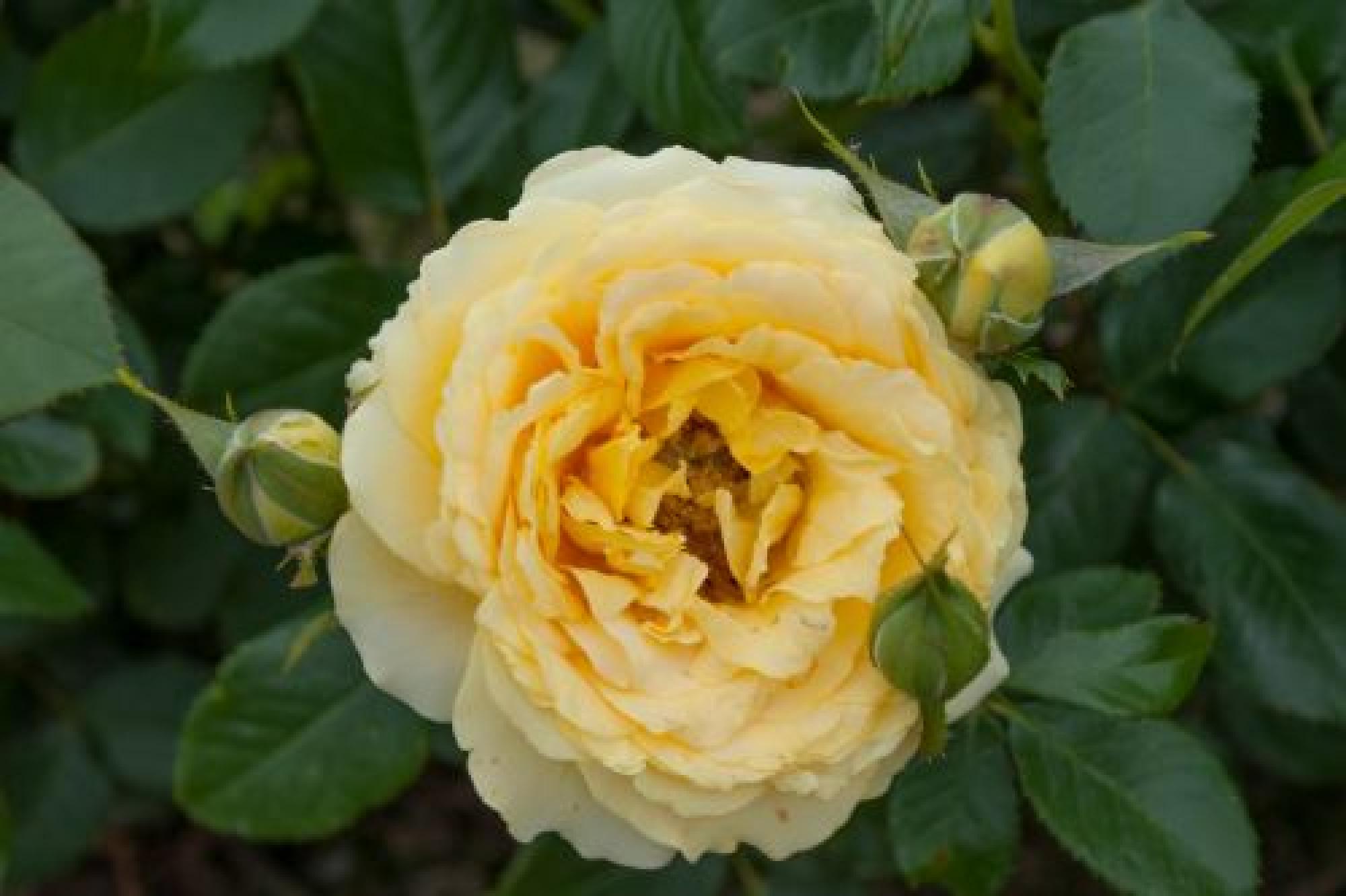 Deze gele roos heeft grote, ronde, dik gevulde, komvormige bloemen. Ziet er een beetje old Fashion uit. Heeft licht groen blad.