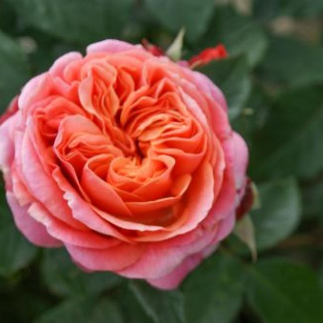 Oranje, met roze gloed. Zachte zoete geur. Zeer gezonde en dankbare roos.