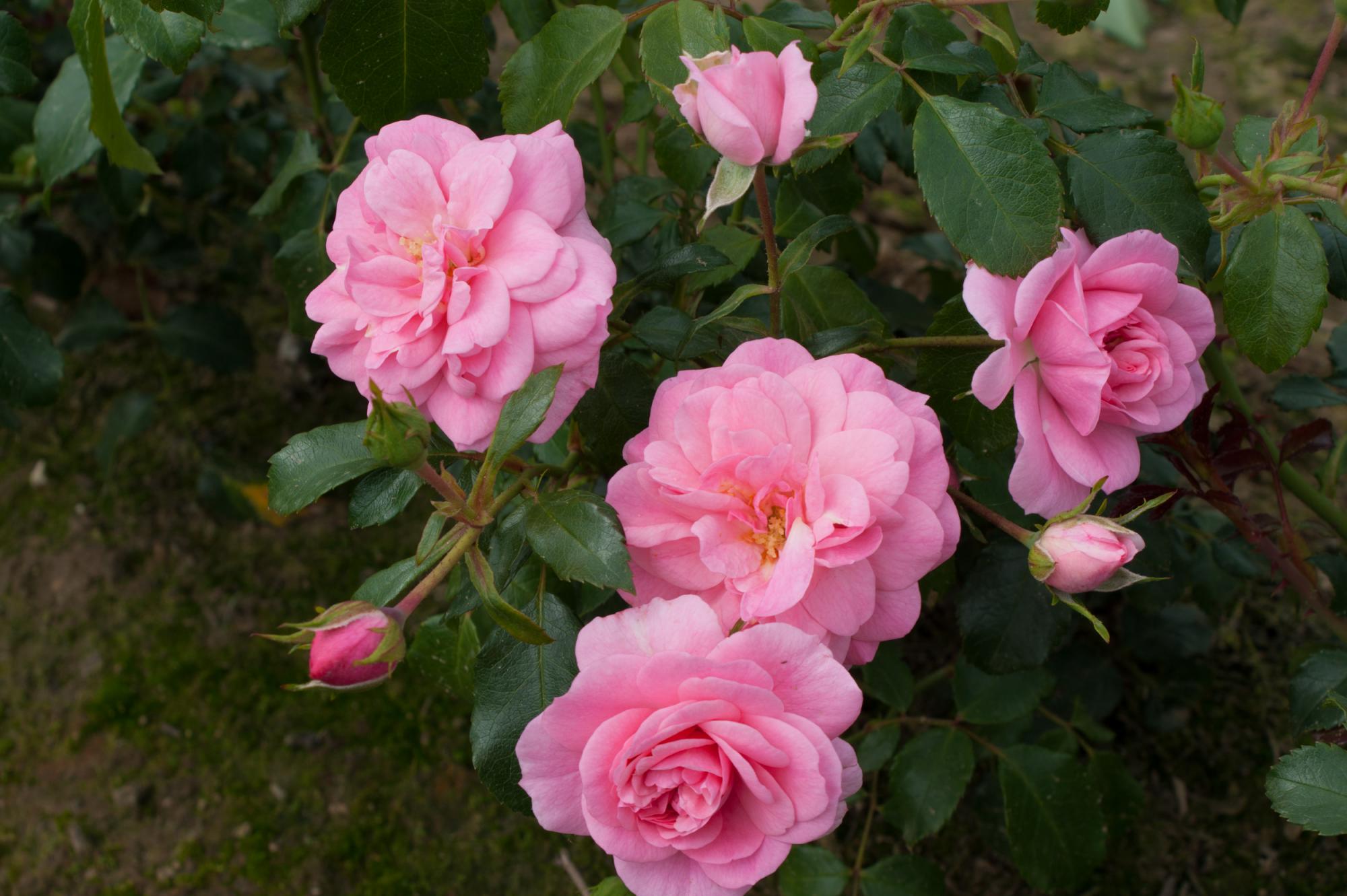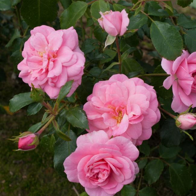 Middelgrote, gevulde bloemen met brede schermen. Licht groen glanzend rond en zeer gezond blad. Zeer rijke bloei, en bijzonder dankbaar. Bossige groei. Deze roos is ook geschikt voor in pot.