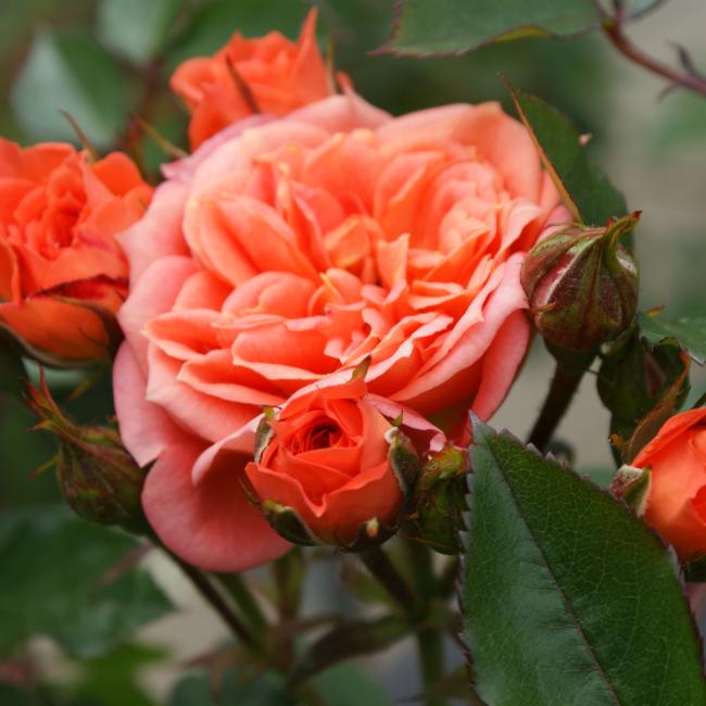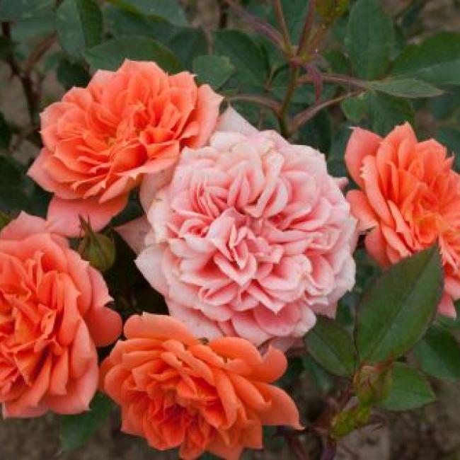 Een klassieke patioroos met talrijke donker-oranje bloemen met een sierlijke plant-bloem combinatie. Lieflijke perzik- abrikoos kleurige bloemen. Goed vertakkende struik en rijkbloeiend.