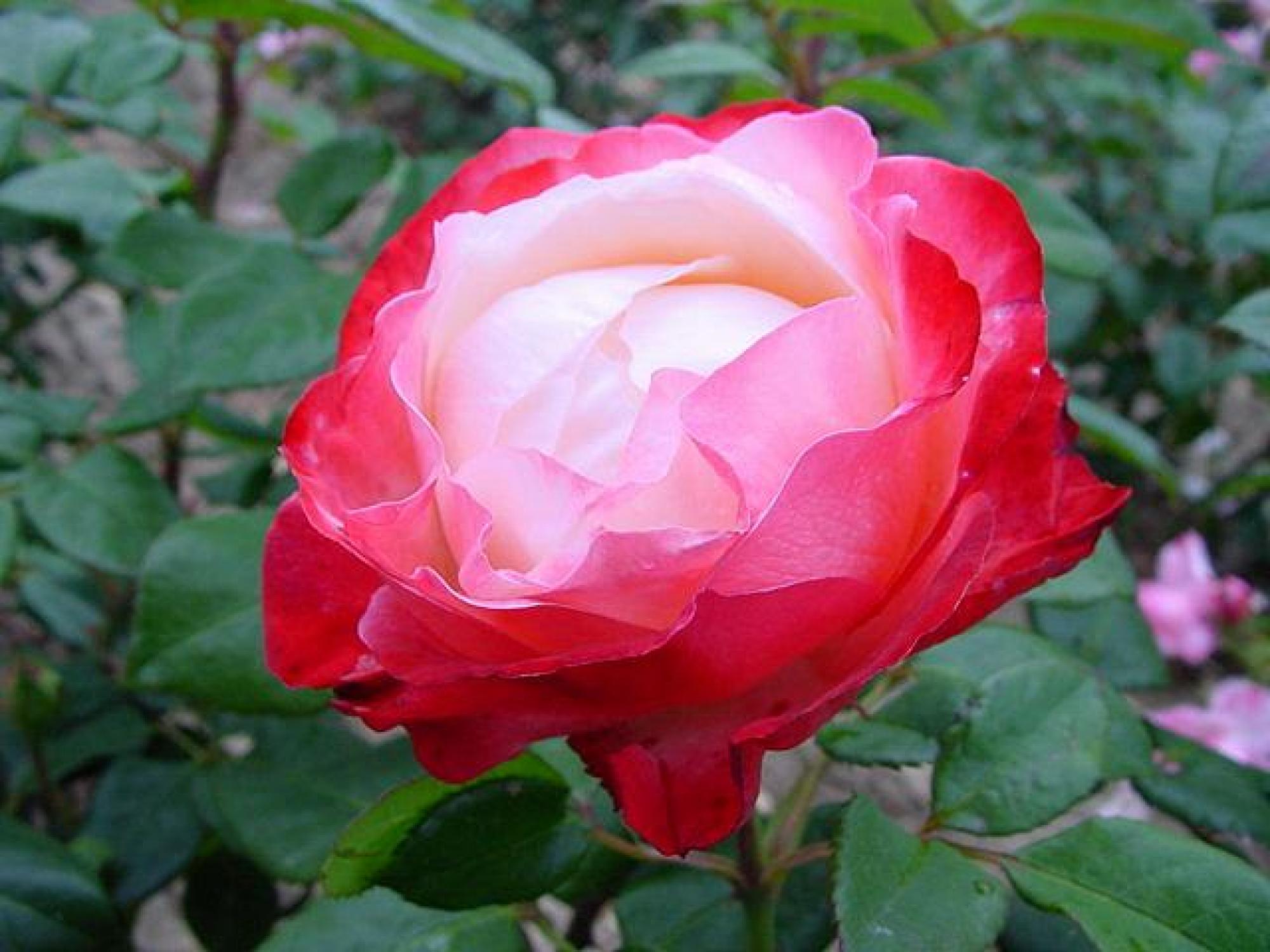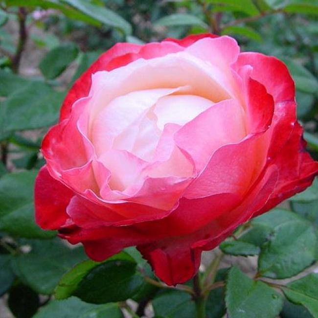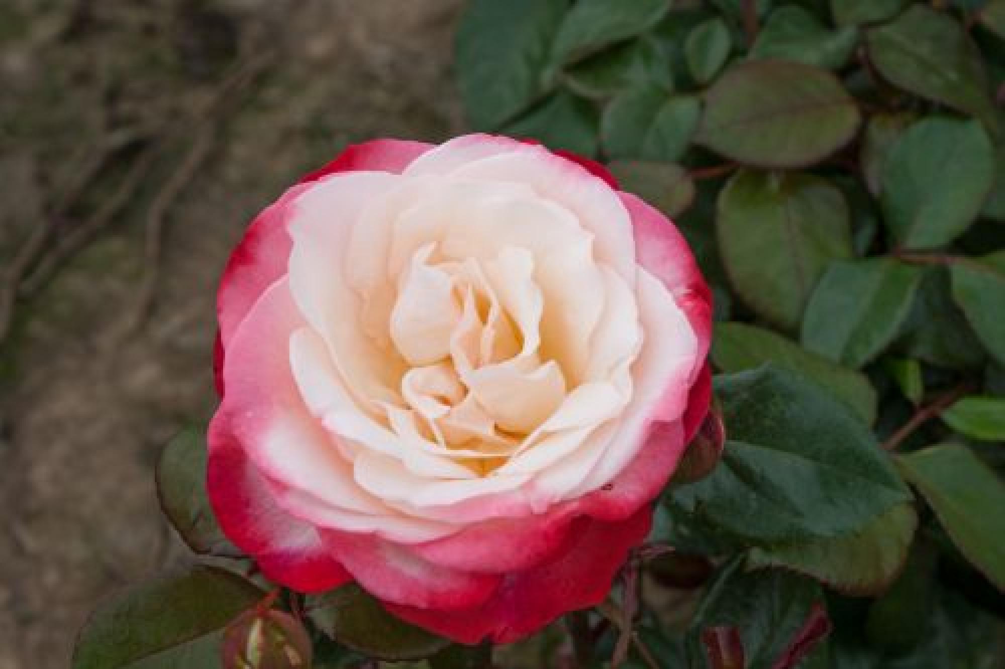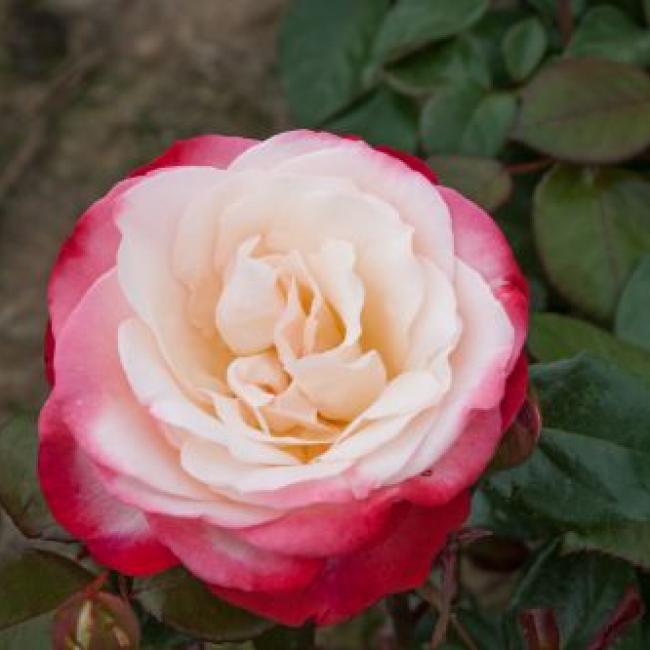 Iedere rozenliefhebber is dolenthousiast van deze roos. Niet alleen de bolvormige knoppen, maar ook de betoverende geur en de prachtige kleurencombinatie crème wit met kersenrood maken deze roos uniek. Doorbloeier, met glanzend blad en een sterke roodkleurige vertakking versterken de pracht van deze roos. Deze edelroos is prima geschikt als snij roos in uw vaas.