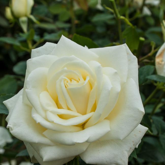 Bossige, sterke struikroos groeit tot 90 cm hoogte, met glanzende donkergroene bladeren. De zeer grote bloemen zijn helderwit en geuren zwak. Geschikt voor perk en border. Kan ook als snij-roos voor de vaas worden gebruikt. De bloem heeft een goede houdbaarheid.