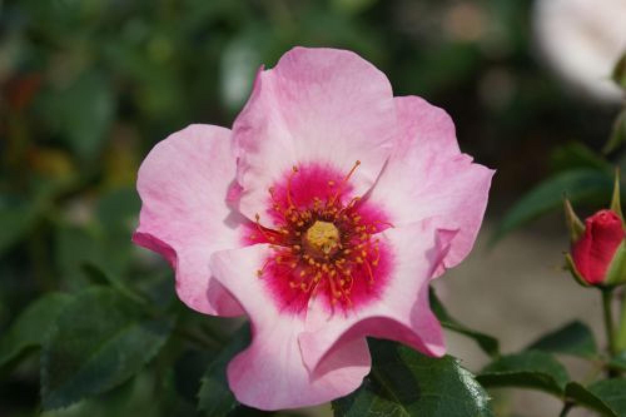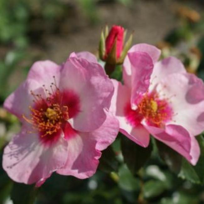 Deze roos behoord tot een hele nieuwe groep rozen die word ontwikkeld. het lijken allemaal net hibiscus bloemen. Maar toch zijn het rozen. De bloemen zijn enkelvoudig en hebben een opvallend donker roze tot framboos rood hart. Ze groeien bossig en compact. Hebben gezond glanzend donkergroen blad. Zeer bijzonder!