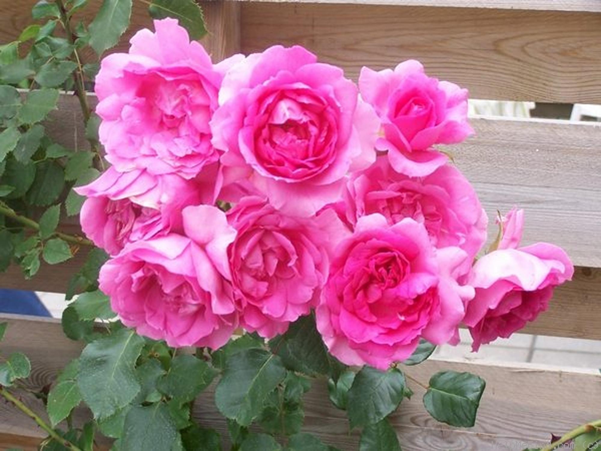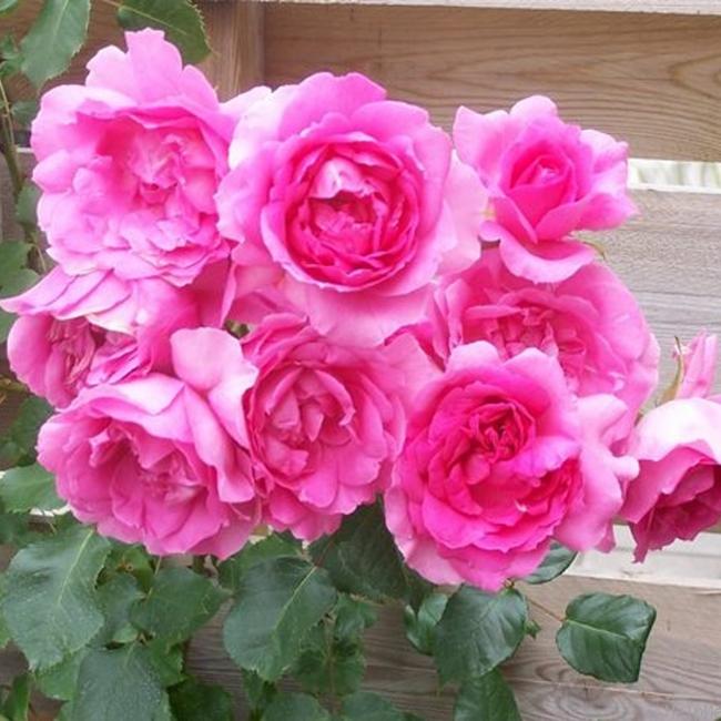 Uit ovale knoppen komen fuchsia roze, dik gevulde bloemen. Deze roos bloeit in trossen. Deze zijn soms zo zwaar dat de iets naar onder kijken. Het is een dankbare bloeier en ook nog eens sterk geurend.