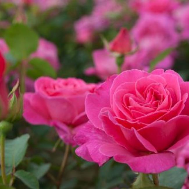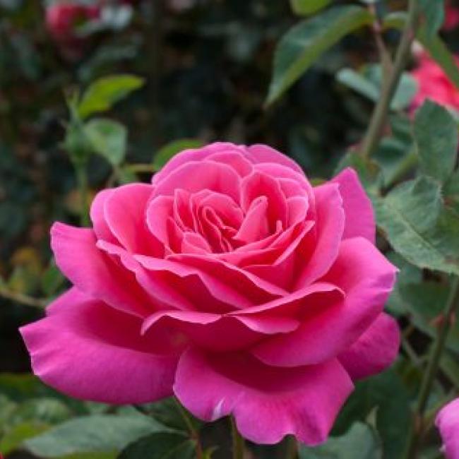 Een opvallend grootbloemige roos. Het is een sterke, robuuste plant met prachtige fuchsia roze klassieke bloemen. Deze roos is sterk geurend en komt het beste tot zijn recht in een perk of in kleine groepjes.