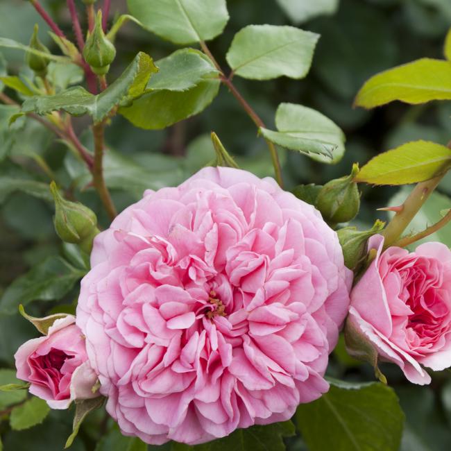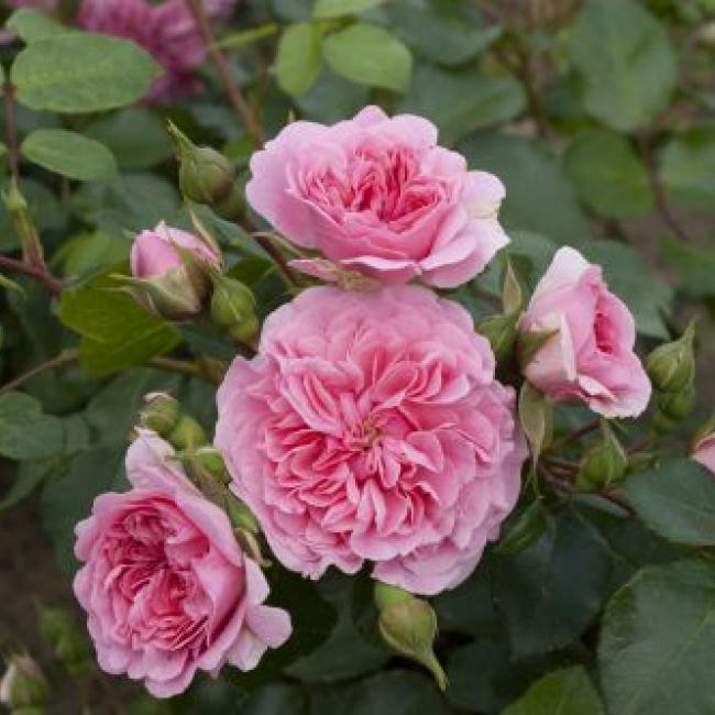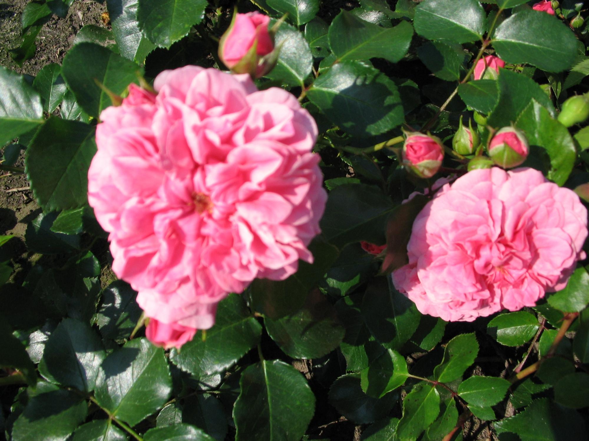Dik gevulde rozen bloemen sieren deze bodembedekker. Ziet er een beetje nostalgisch uit. Heeft glanzend groen blad en is een rijkelijke bloeier.