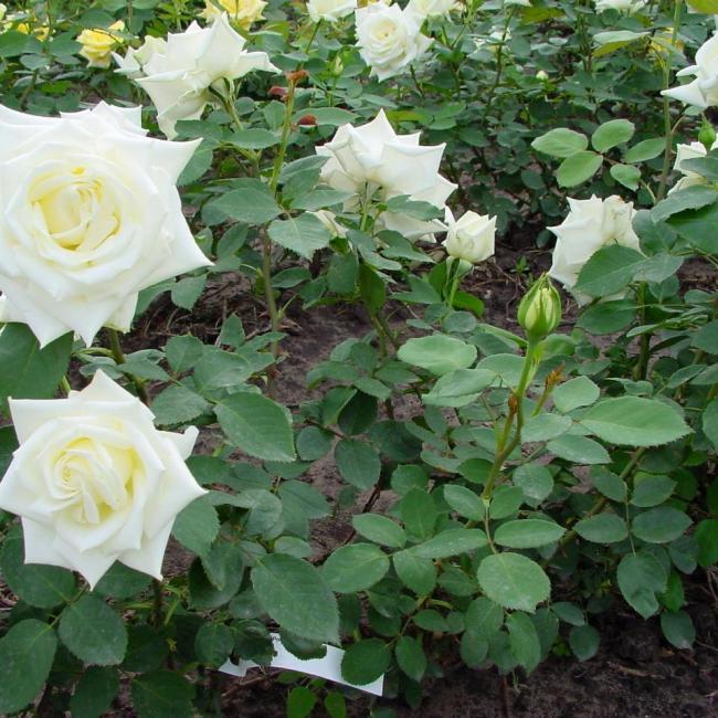 Theehybride Roos met groenachtige witte grote knoppen, die uitbloeien tot spierwitte bloemen, met de pracht van een edelroos. Zeer sterke soort met uitstekende vertakking. Vorstbestendig, lang houdbaar en decent geurend. Ook goed toepasbaar in combinatie met vaste planten .