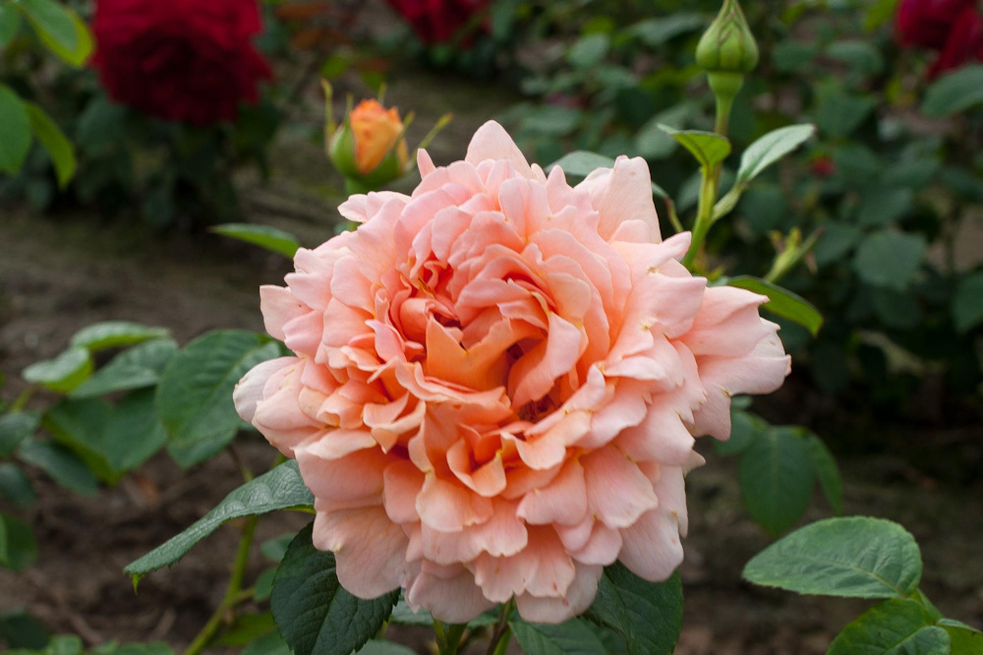 Is een klimroos, maar kan ook als perk-heesteroos geplant worden.